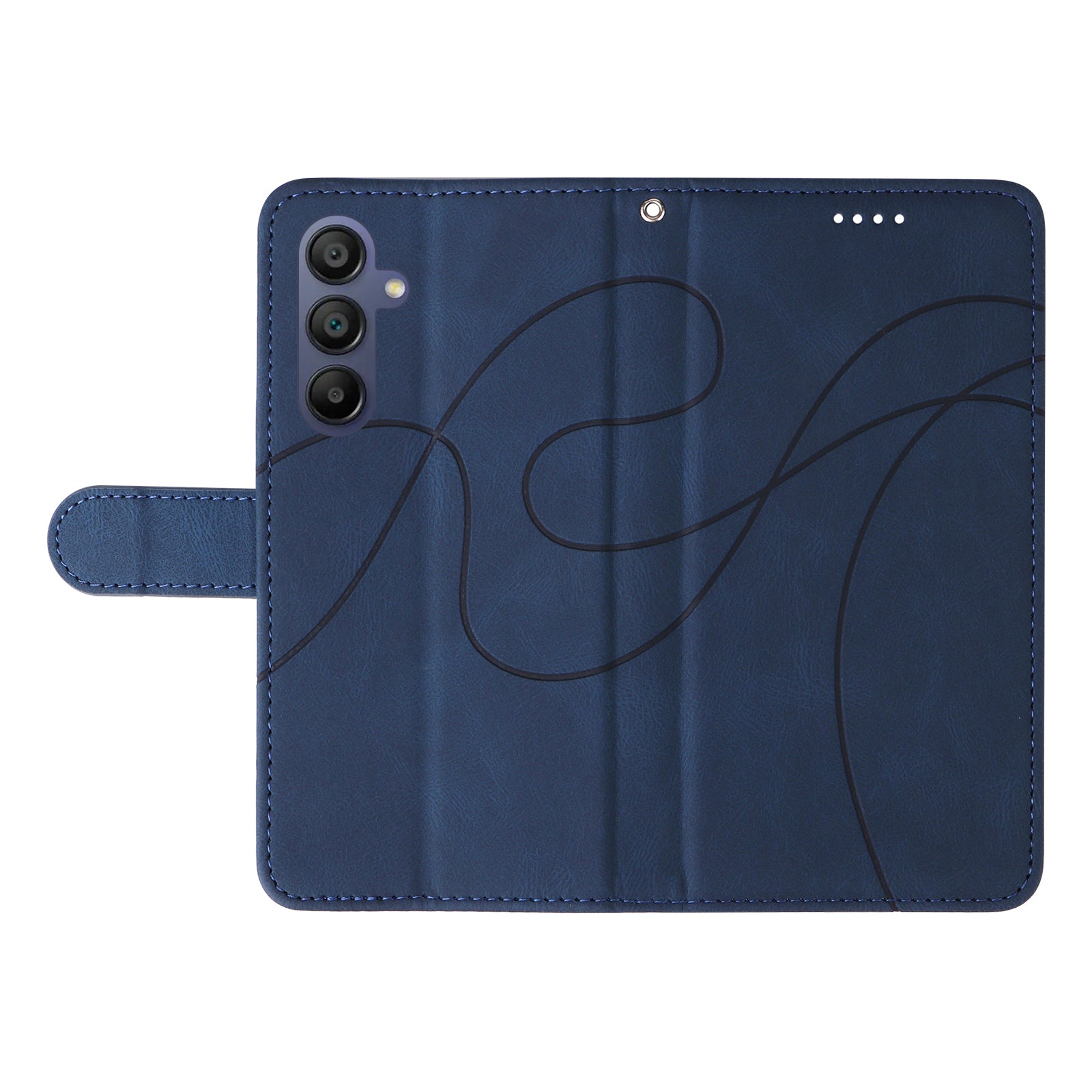 For Samsung Galaxy A16 5G / A16 4G Case Stand Wallet Leather Phone Cover Curved Line Wrist Strap - Blue