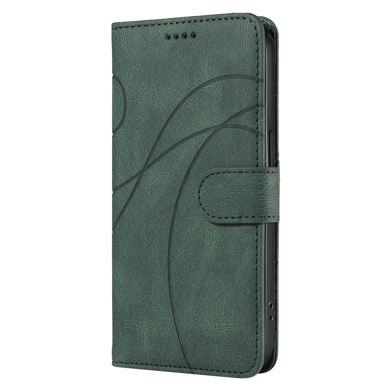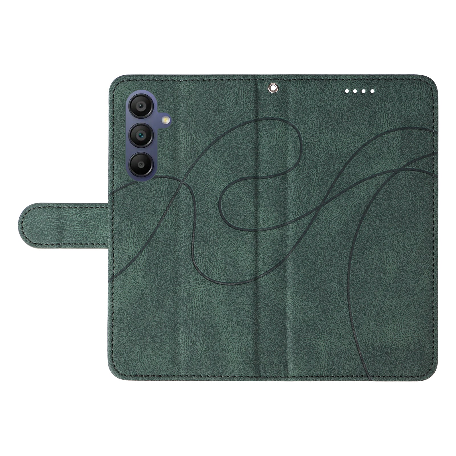 For Samsung Galaxy A16 5G / A16 4G Case Stand Wallet Leather Phone Cover Curved Line Wrist Strap - Green