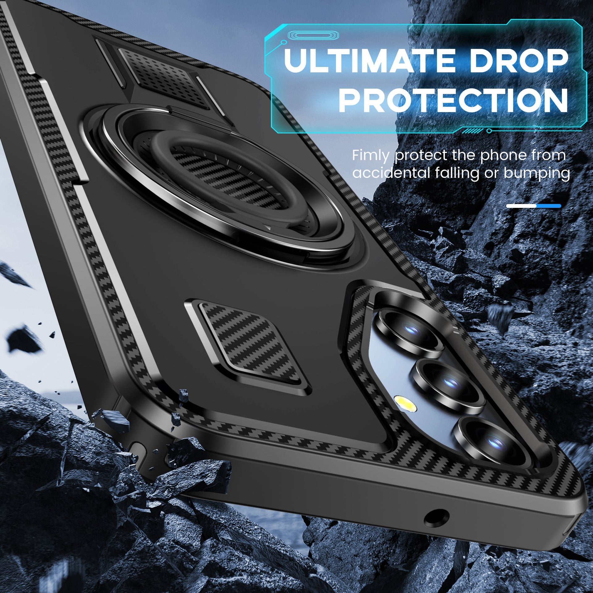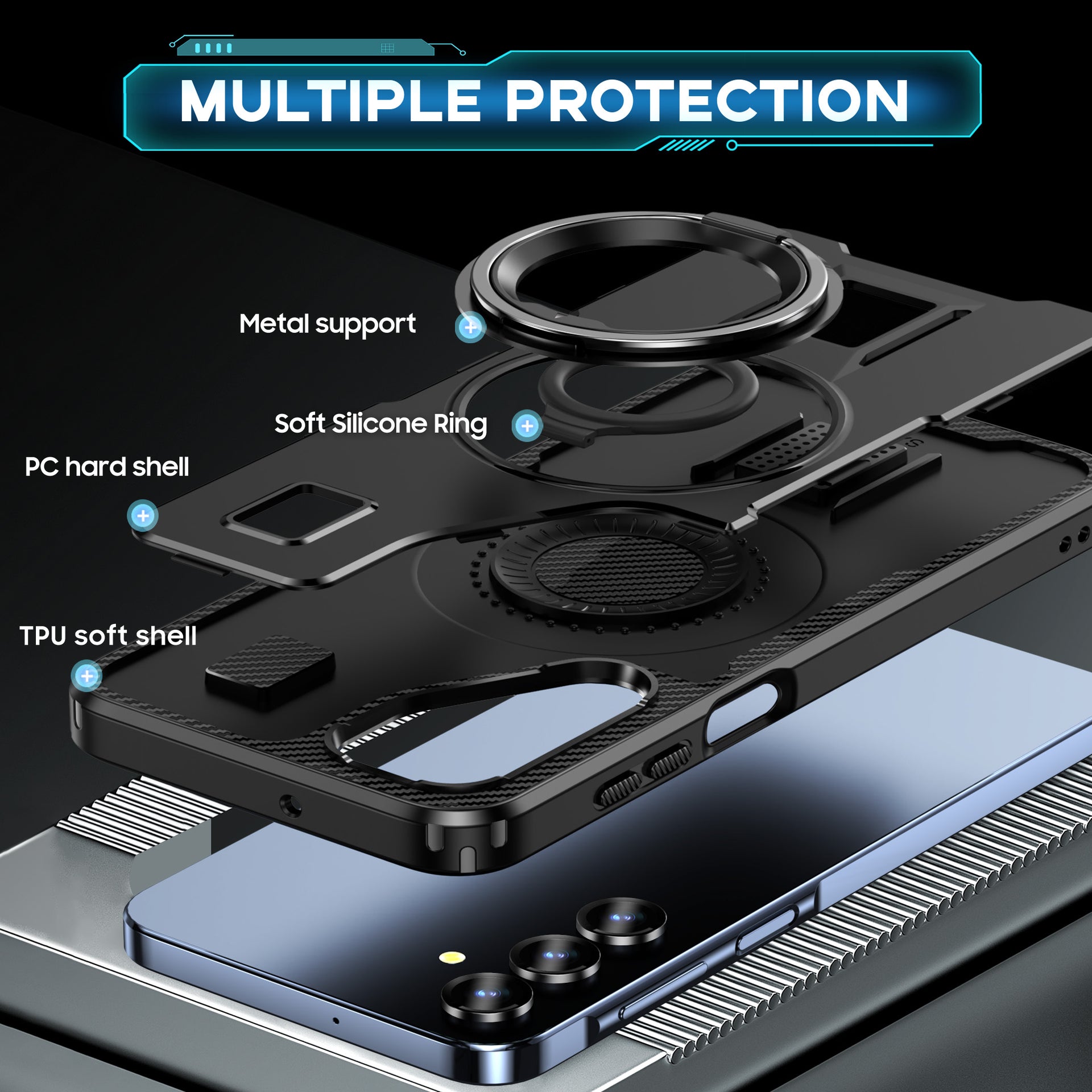 For Samsung Galaxy A16 5G / A16 4G Case TPU+PC Kickstand Phone Cover with Silicone Finger Strap - Black