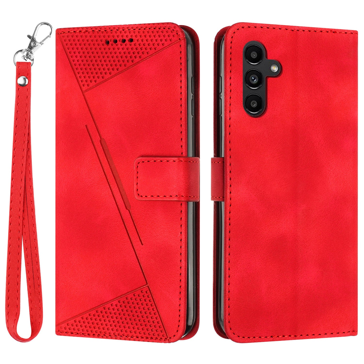 For Samsung Galaxy A16 5G / A16 4G Case Triangle Pattern Leather Phone Cover with Hand Strap Card Slots - Red