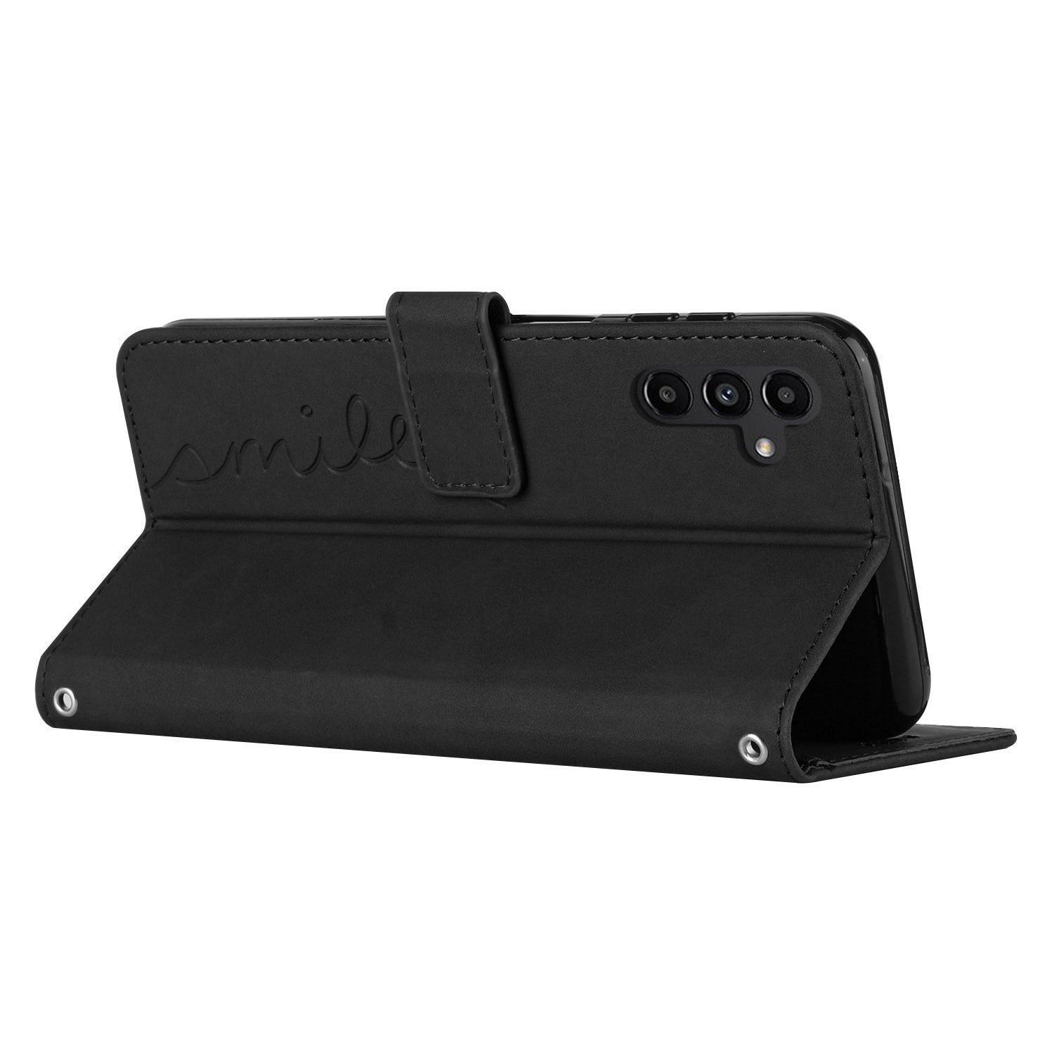 For Samsung Galaxy A16 5G / A16 4G Case Viewing Stand PU Leather Phone Cover Imprinted Pattern - Black