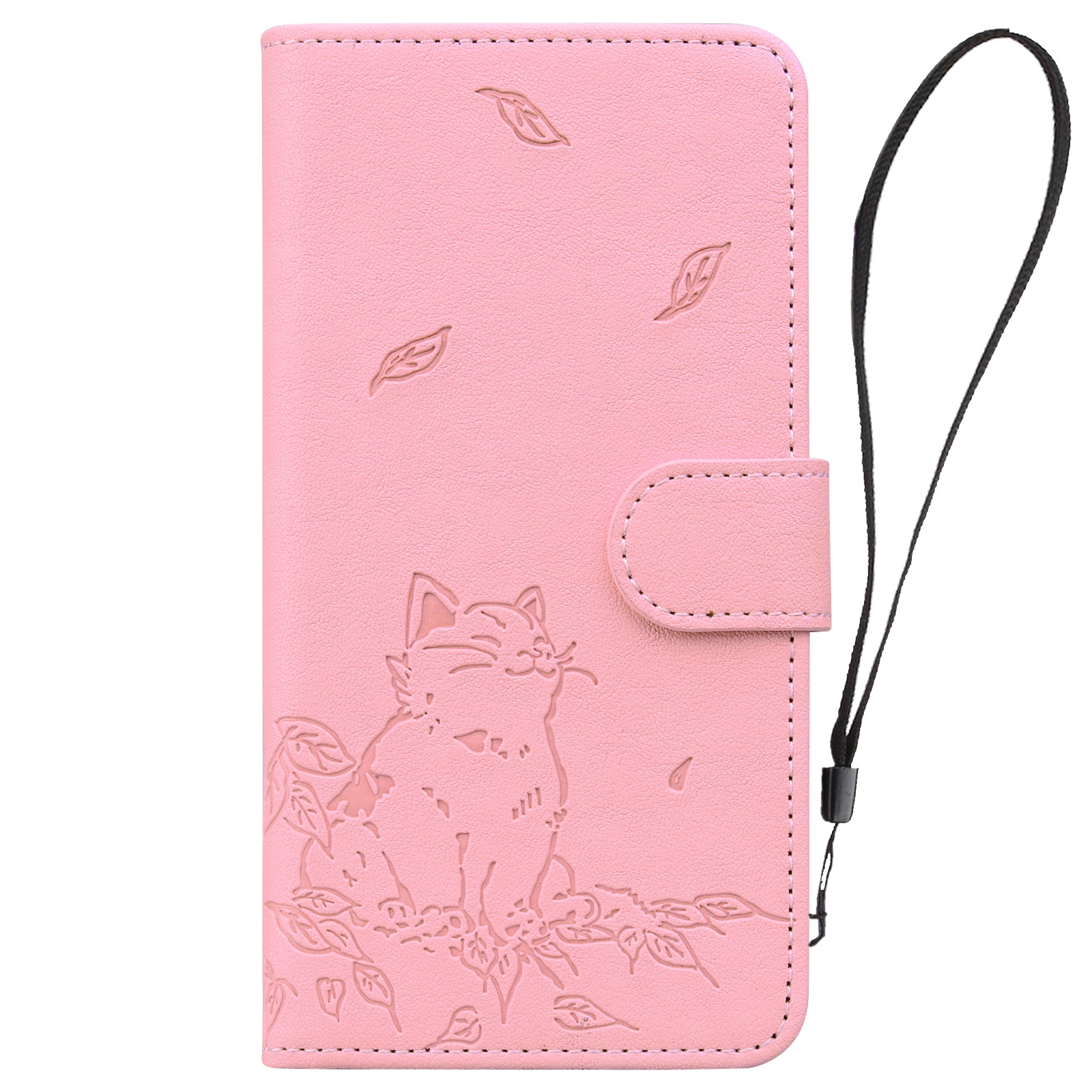 For Samsung Galaxy A16 5G / A16 4G Case Wallet Cat Pattern Imprinted Leather Phone Cover - Pink