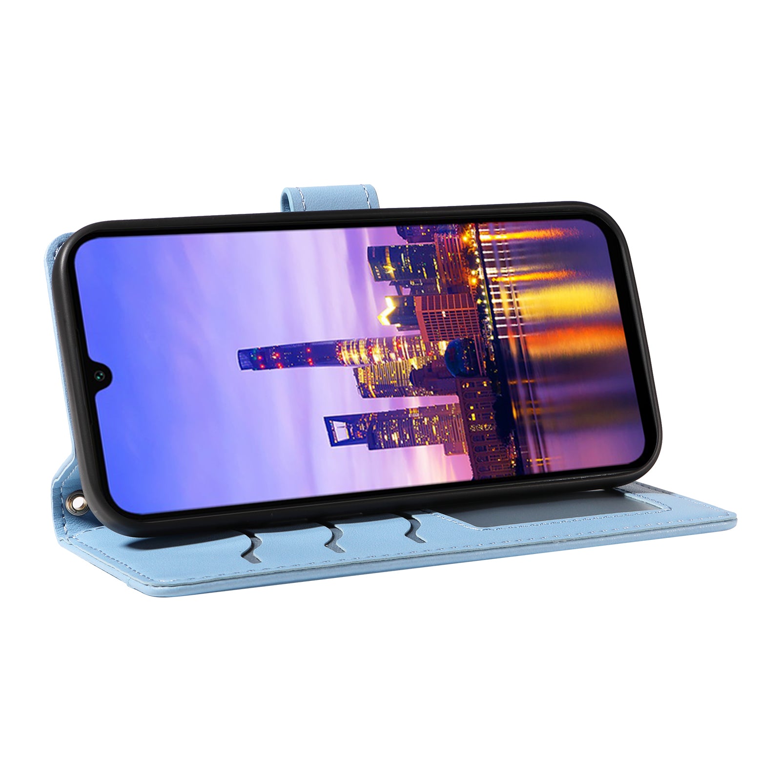For Samsung Galaxy A16 5G / A16 4G Case Wallet Rhombus Leather Phone Cover with Shoulder Strap, Wrist Strap - Blue