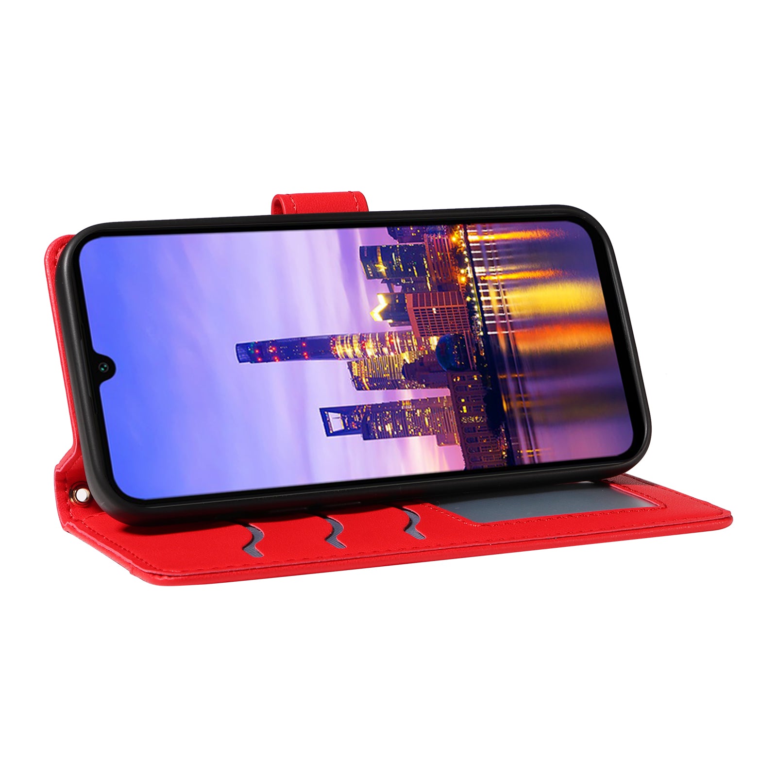 For Samsung Galaxy A16 5G / A16 4G Case Wallet Rhombus Leather Phone Cover with Shoulder Strap, Wrist Strap - Red