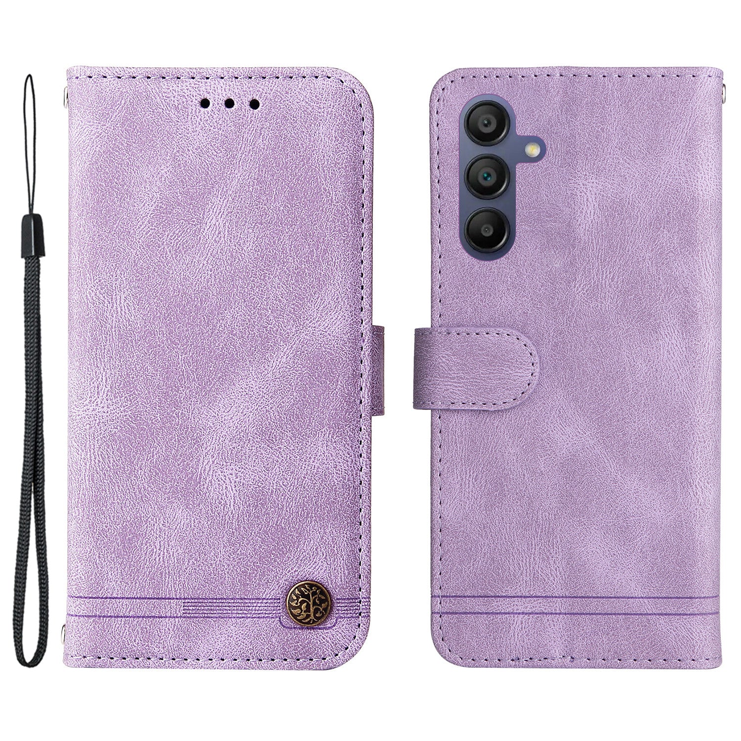 •Durable and Stylish Material: Made from skin-touch PU leather and a TPU inner shell, this case combines durability with a sleek, stylish appearance. The imprint lines and tree pattern hardware add a unique touch to your device