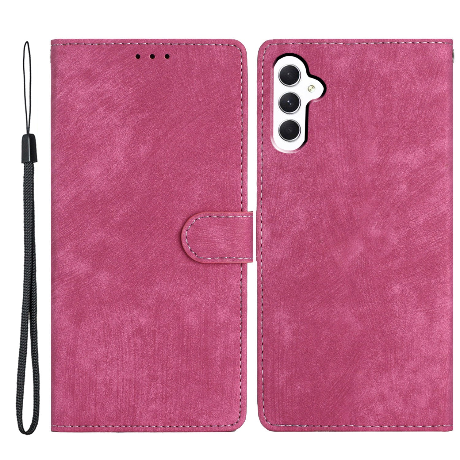 For Samsung Galaxy A16 5G / A16 4G Case with Card Clots Skin-Touch PU Leather Phone Cover Stand - Rose