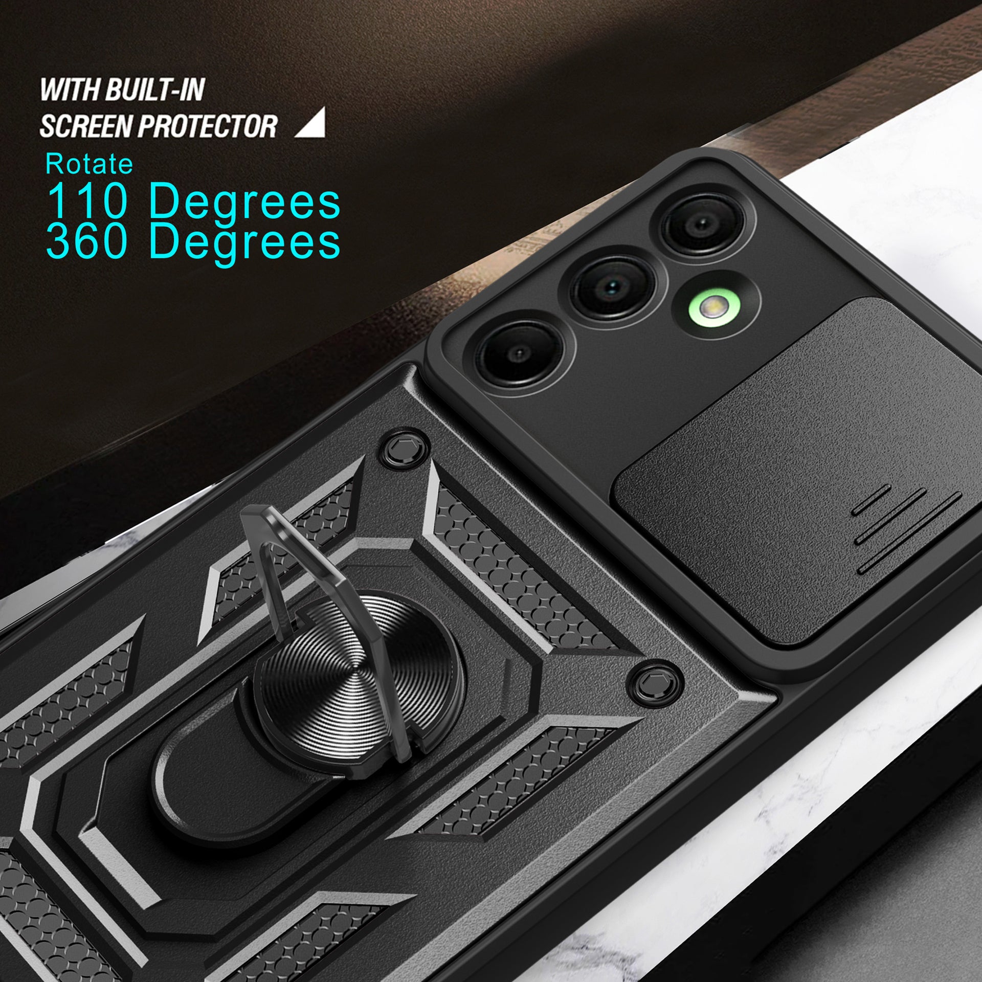 For Samsung Galaxy A16 5G / A16 4G Case with Slide Camera Lid PC+TPU Kickstand Phone Cover - Silver