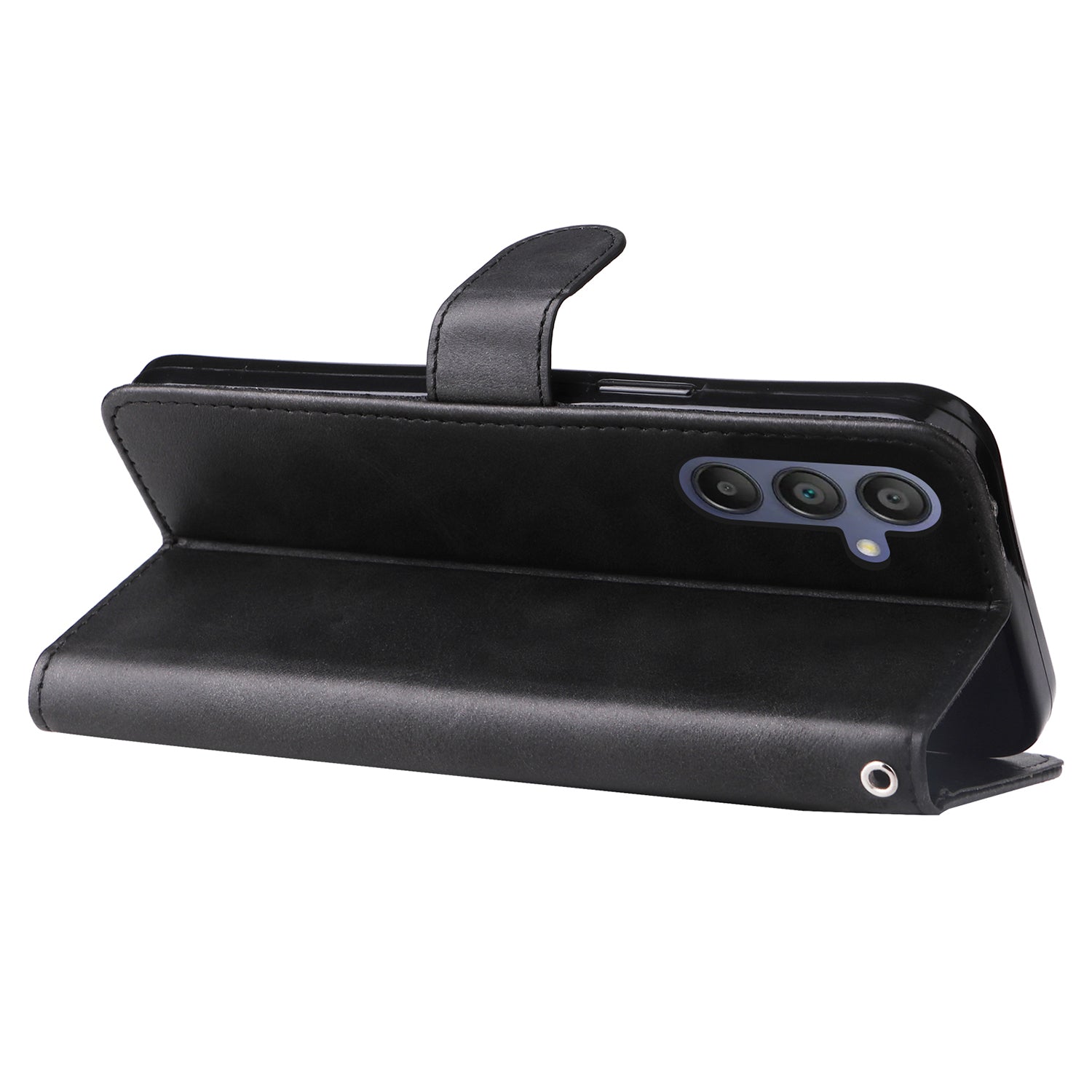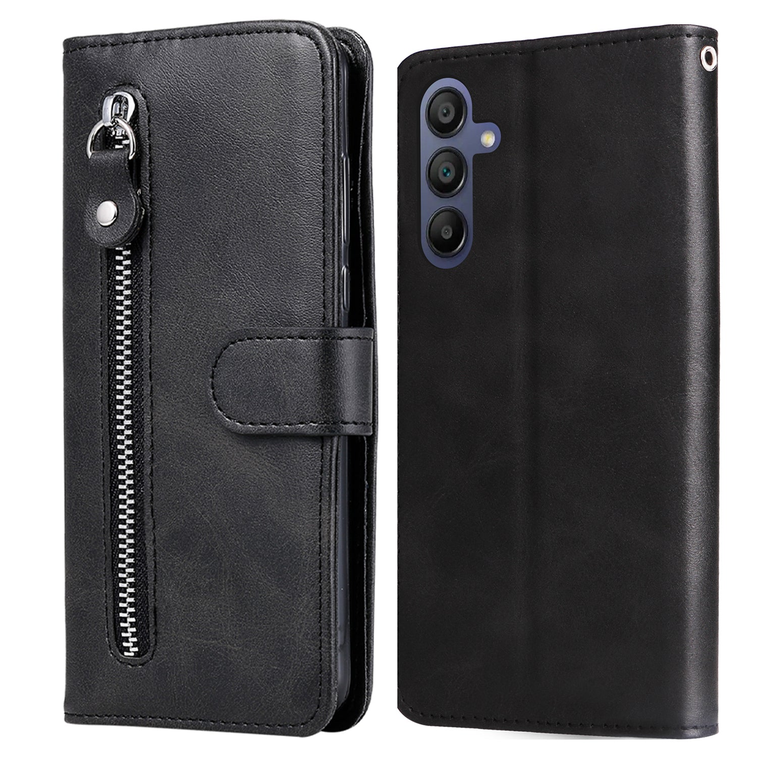 For Samsung Galaxy A16 5G / A16 4G Case Zipper Wallet Calf Texture PU Leather Phone Cover - Black