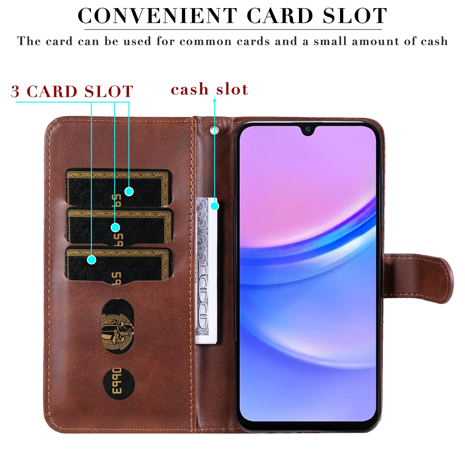 For Samsung Galaxy A16 5G / A16 4G Case Zipper Wallet Calf Texture PU Leather Phone Cover - Brown