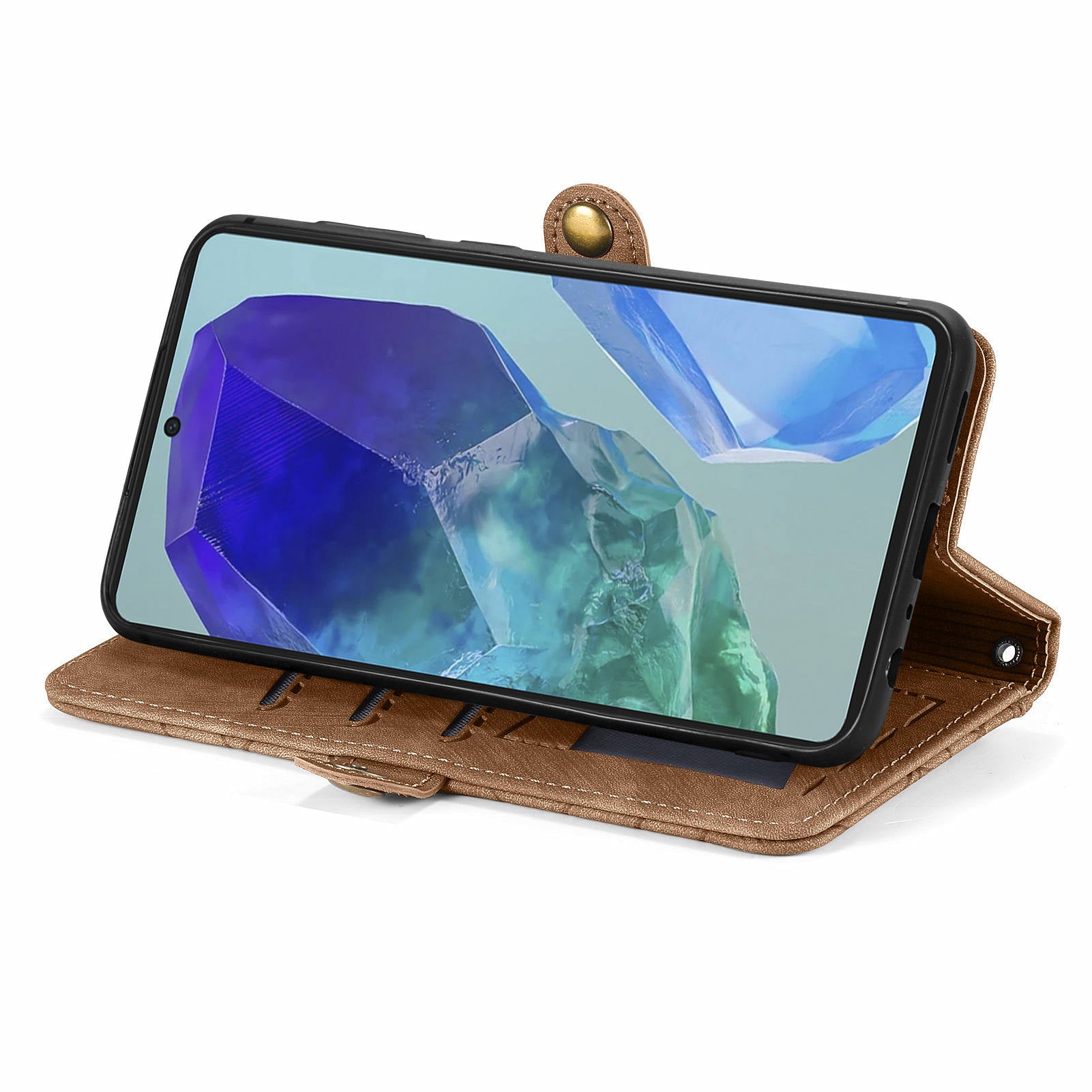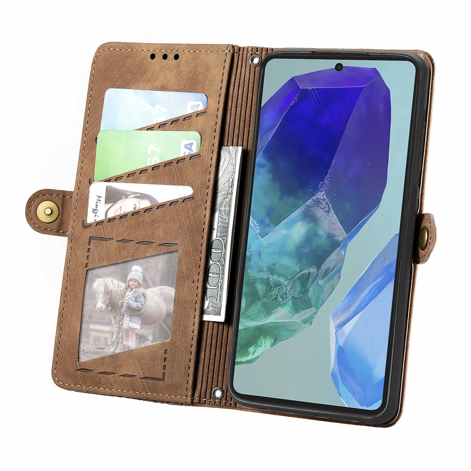 For Samsung Galaxy A16 5G / A16 4G Case Zipper Wallet Geometry Lines Leather Phone Cover - Brown