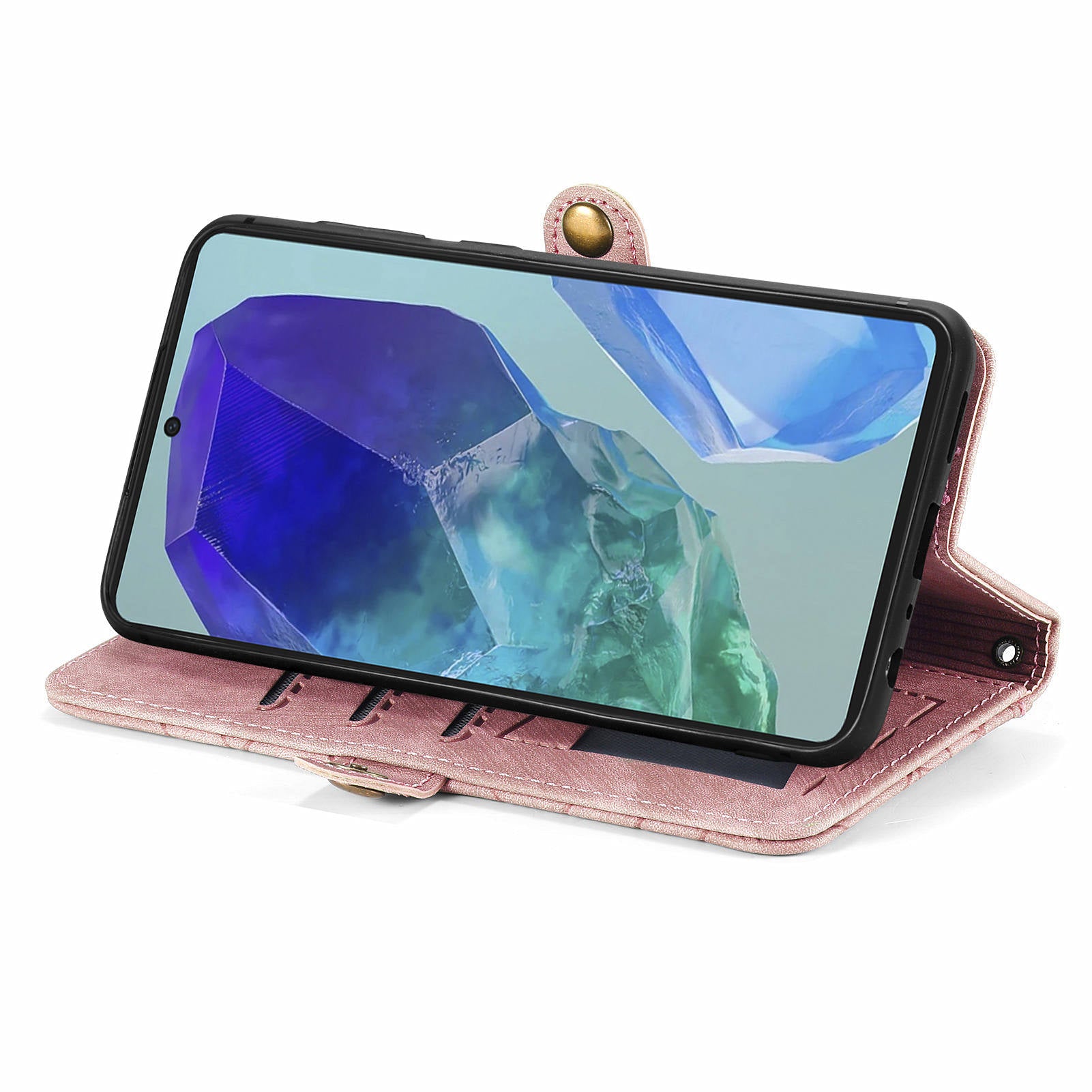 For Samsung Galaxy A16 5G / A16 4G Case Zipper Wallet Geometry Lines Leather Phone Cover - Pink