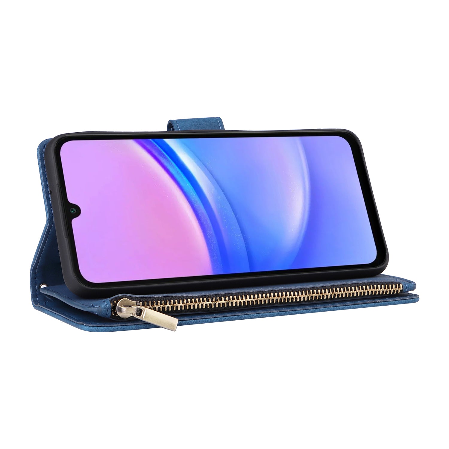 For Samsung Galaxy A16 5G / A16 4G Case Zipper Wallet Multiple Card Slots Leather Phone Cover - Blue