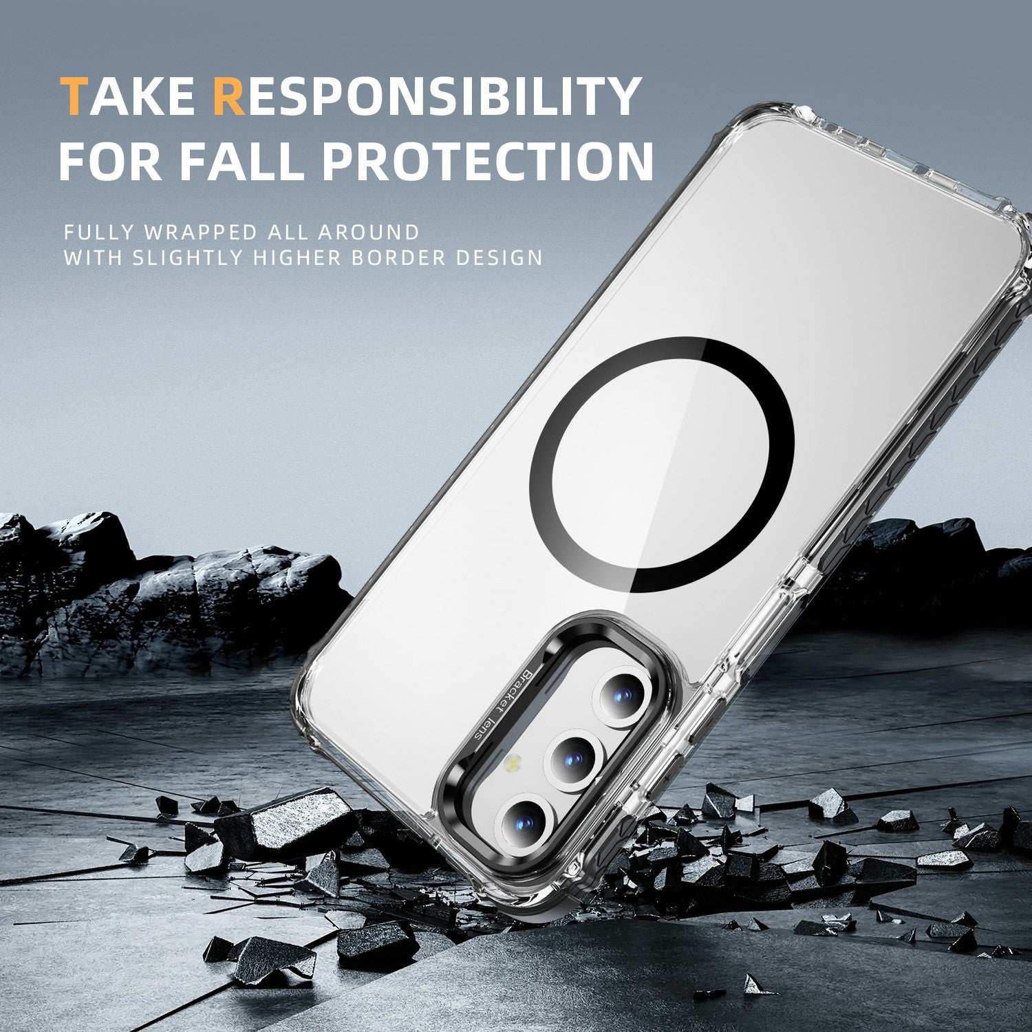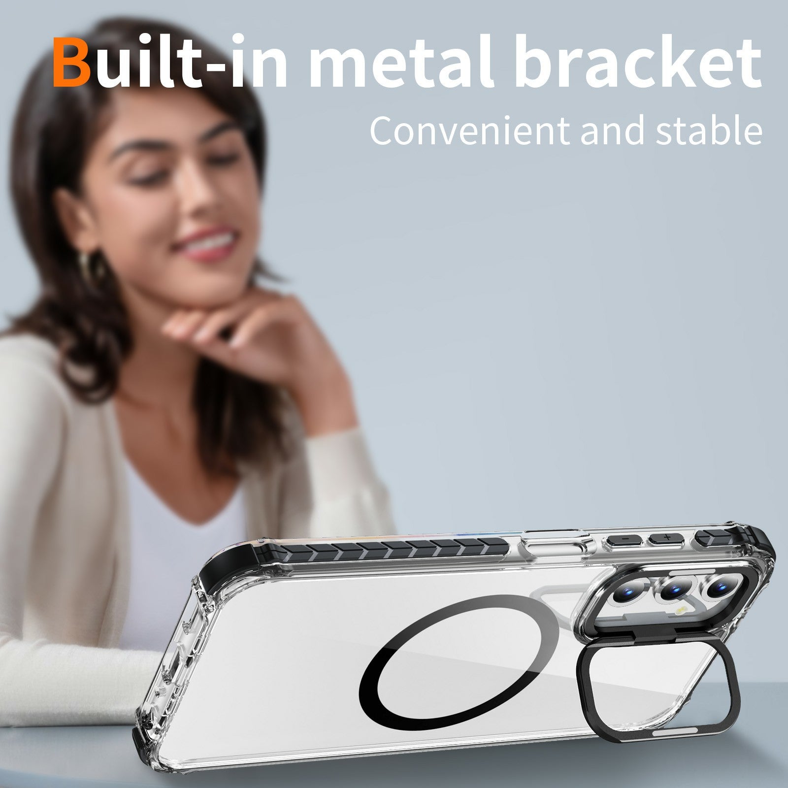 For Samsung Galaxy A16 5G  /  A16 4G Clear Phone Case with Lens Kickstand Cover Compatible with MagSafe - Black