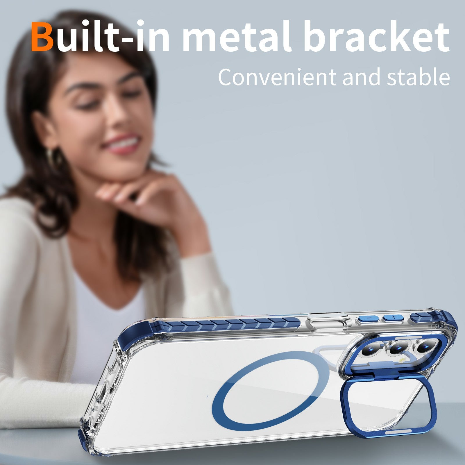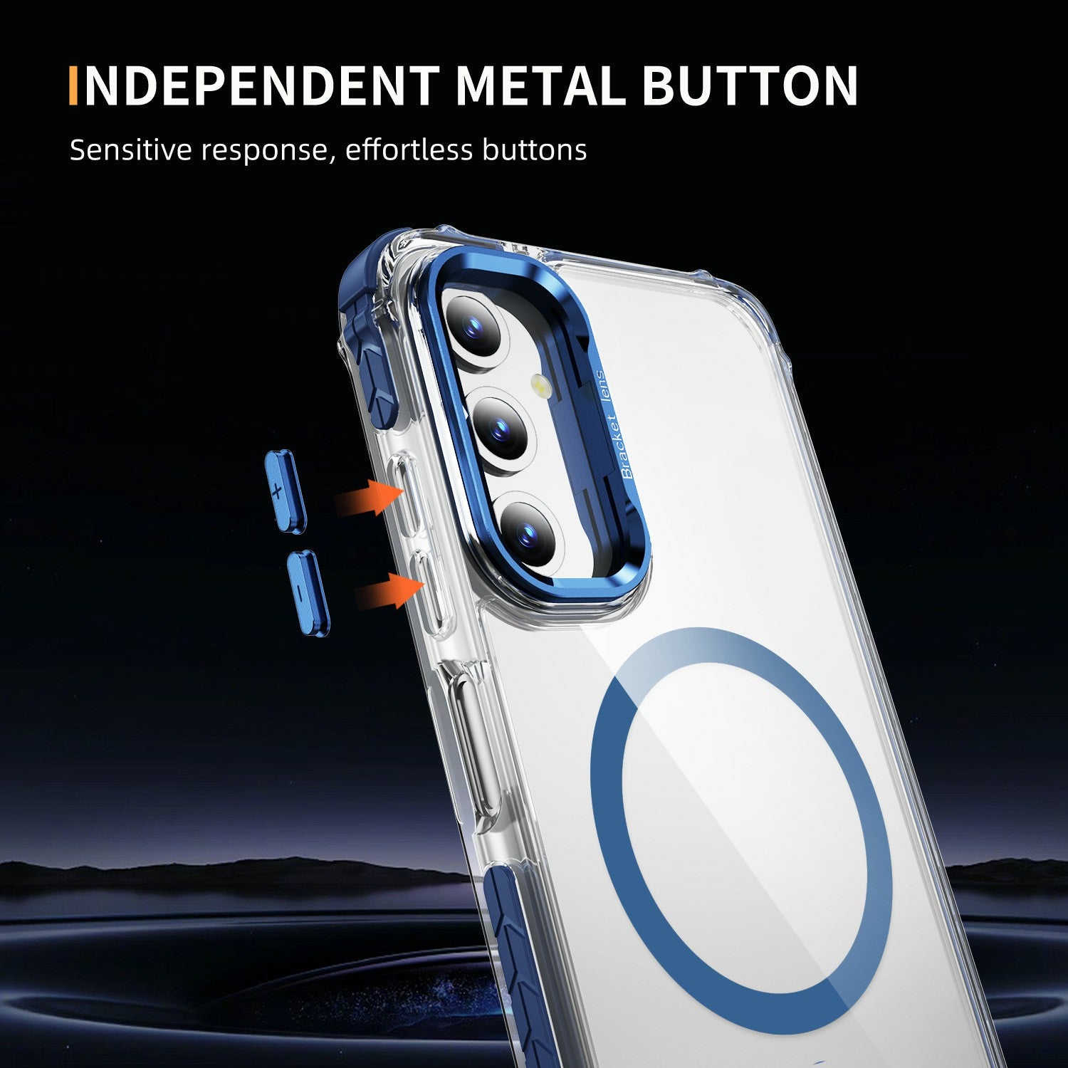 For Samsung Galaxy A16 5G  /  A16 4G Clear Phone Case with Lens Kickstand Cover Compatible with MagSafe - Blue