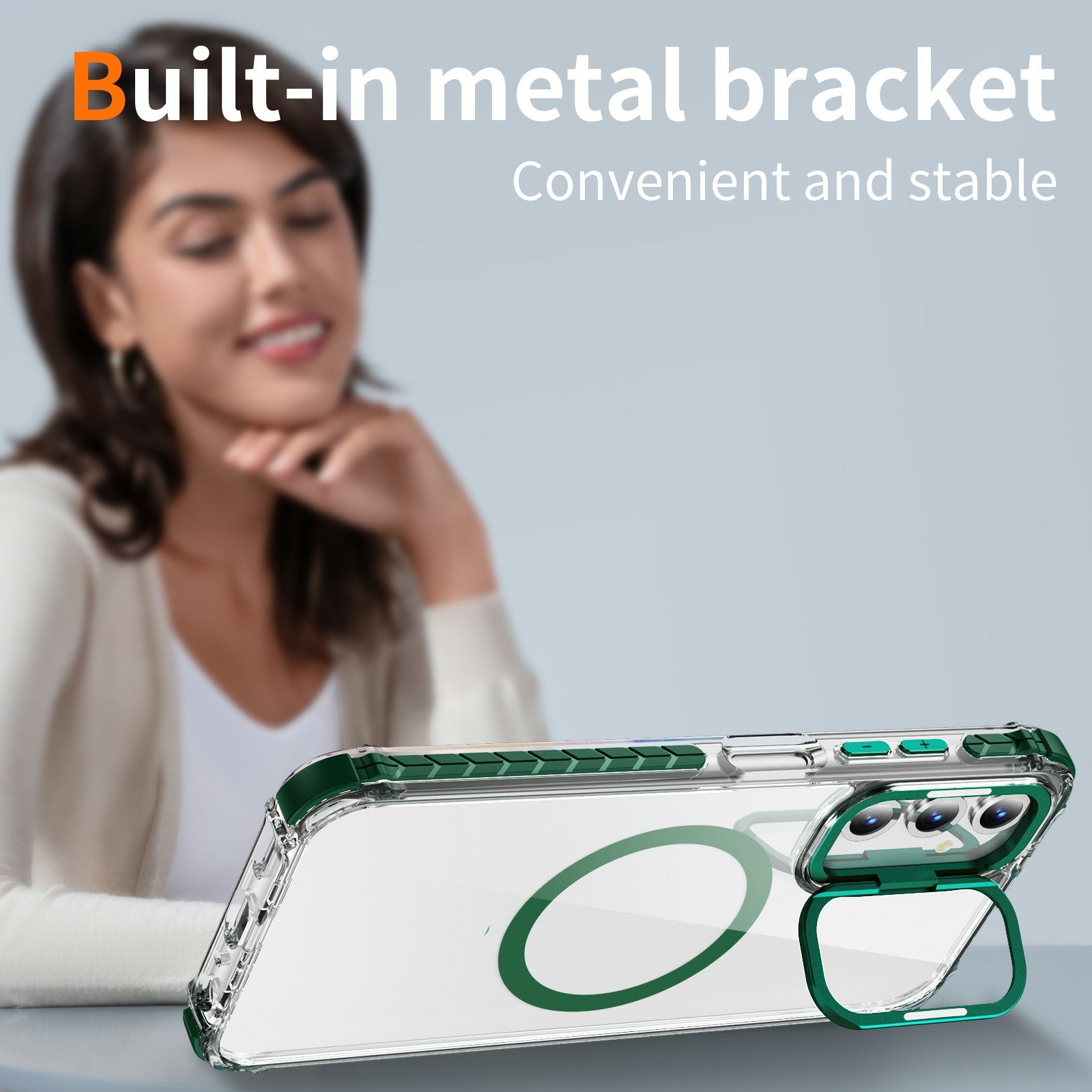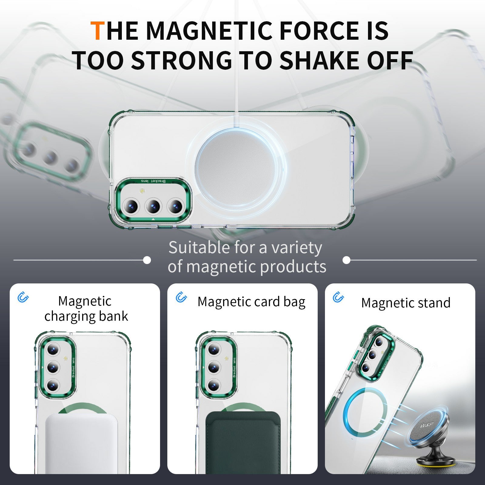 For Samsung Galaxy A16 5G  /  A16 4G Clear Phone Case with Lens Kickstand Cover Compatible with MagSafe - Green