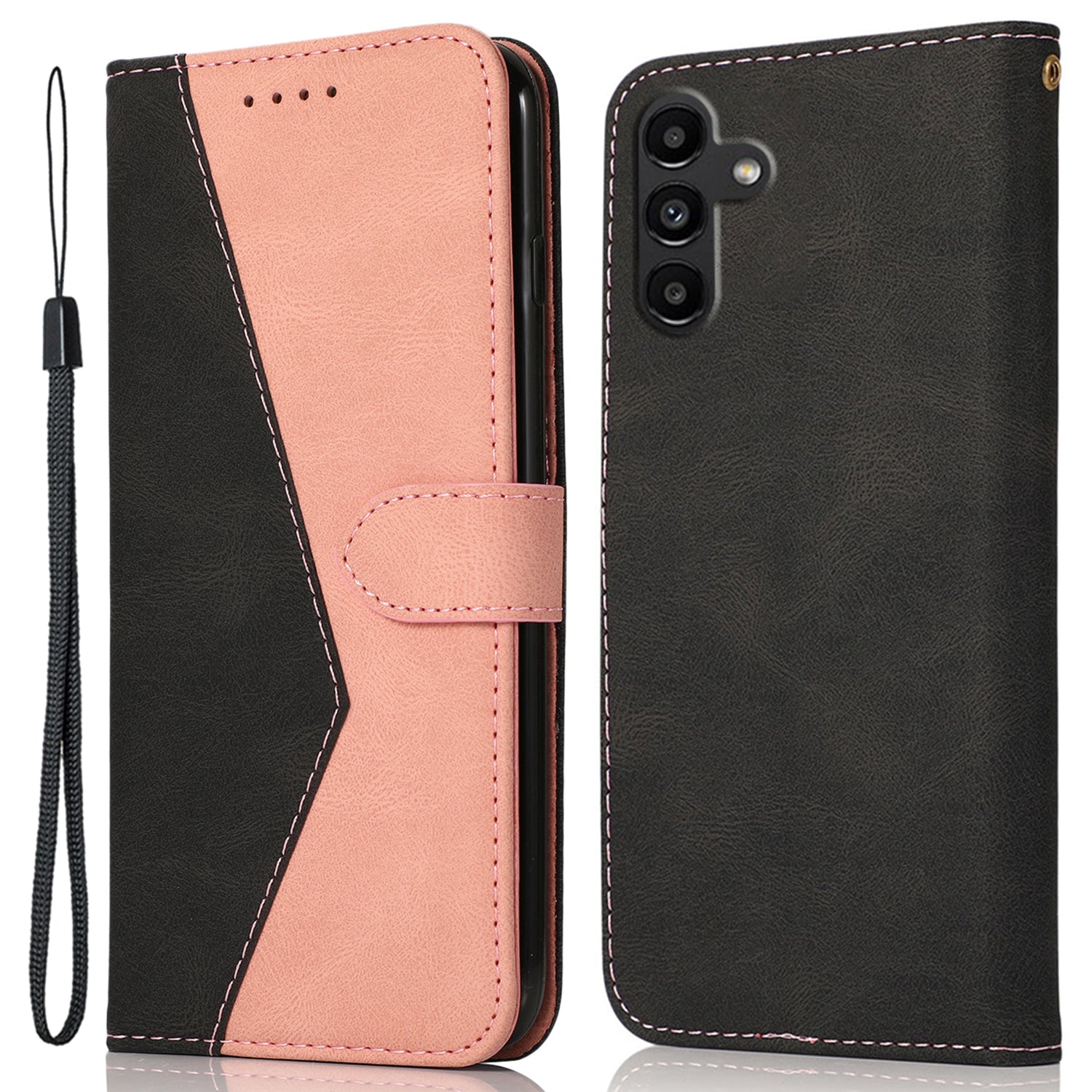 For Samsung Galaxy A16 5G / A16 4G Cover Color Splicing Wallet Stand Leather Phone Case with Wrist Strap - Black+Rose Gold
