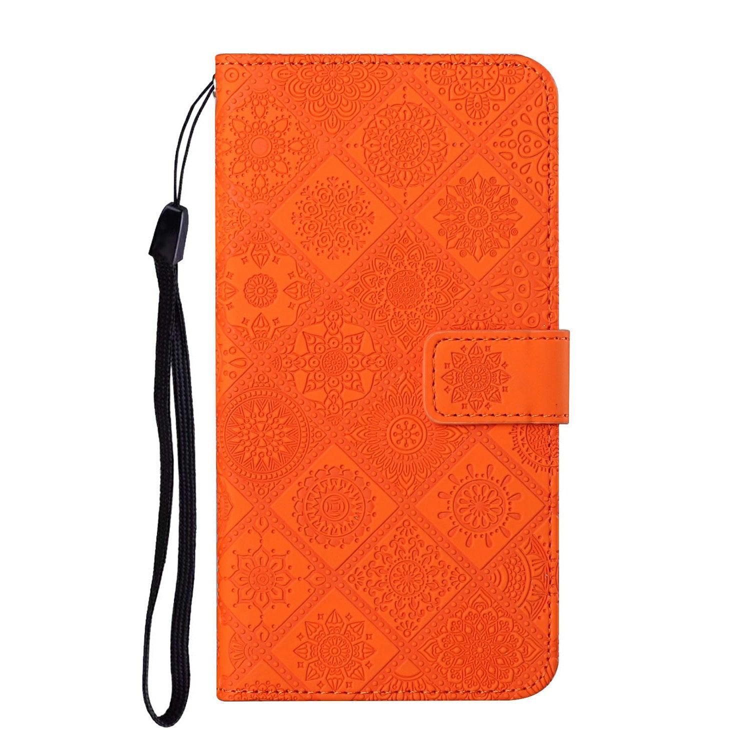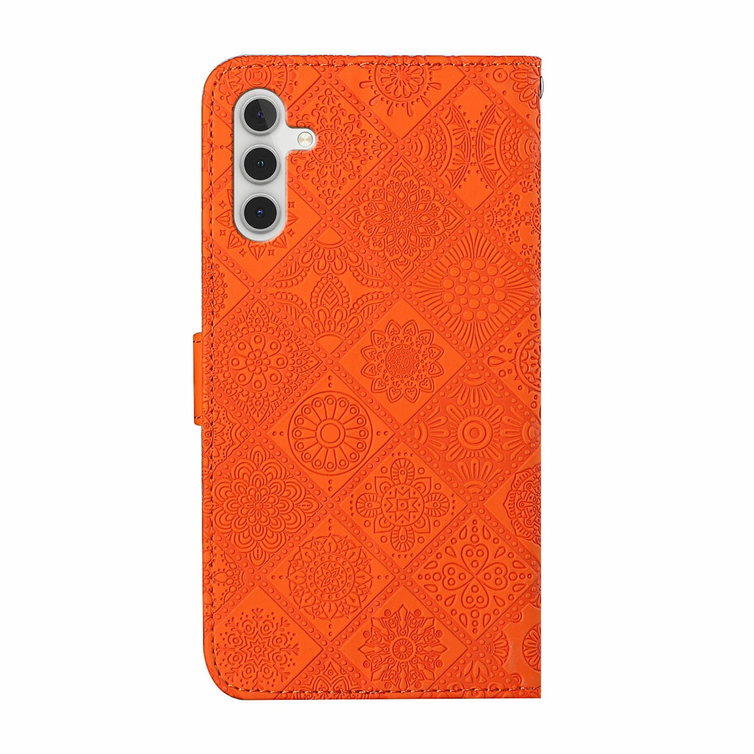 For Samsung Galaxy A16 5G / A16 4G Leather Case Ethnic Style Phone Wallet Cover with Strap - Orange