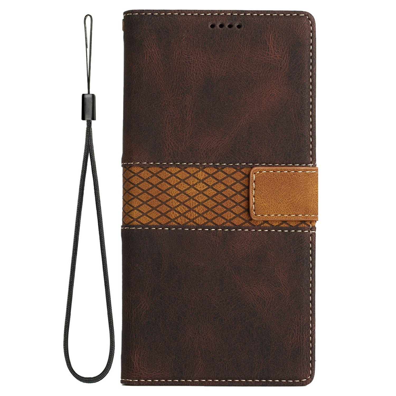 For Samsung Galaxy A16 5G / A16 4G Leather Case Grid Splicing Stand Wallet Phone Cover - Brown