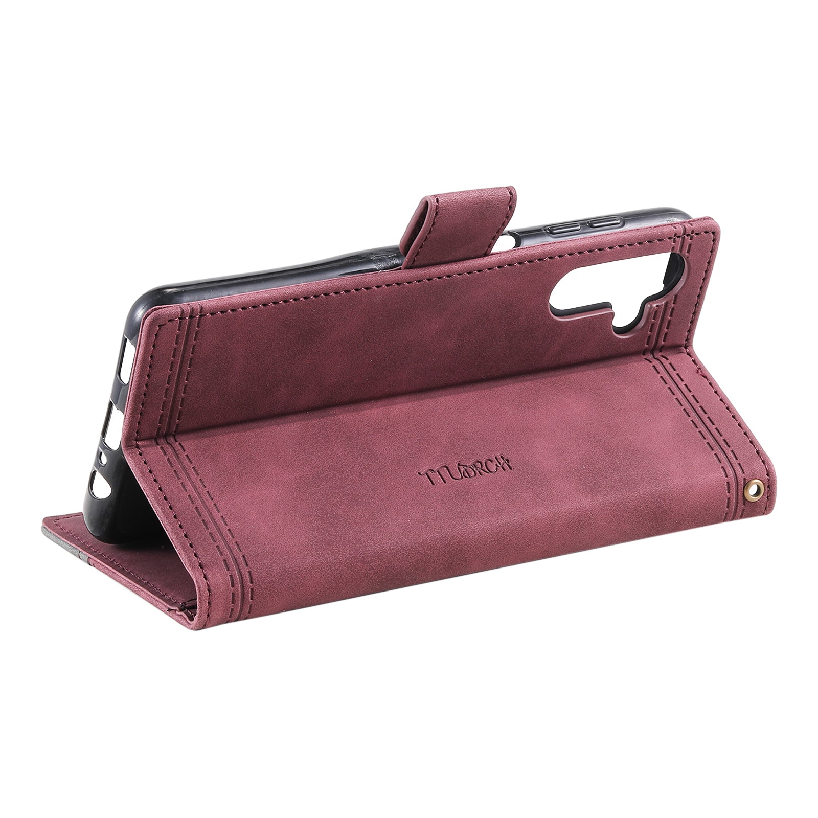 For Samsung Galaxy A16 5G / A16 4G Leather Case RFID Blocking Wallet Stand Phone Cover with Strap - Wine Red