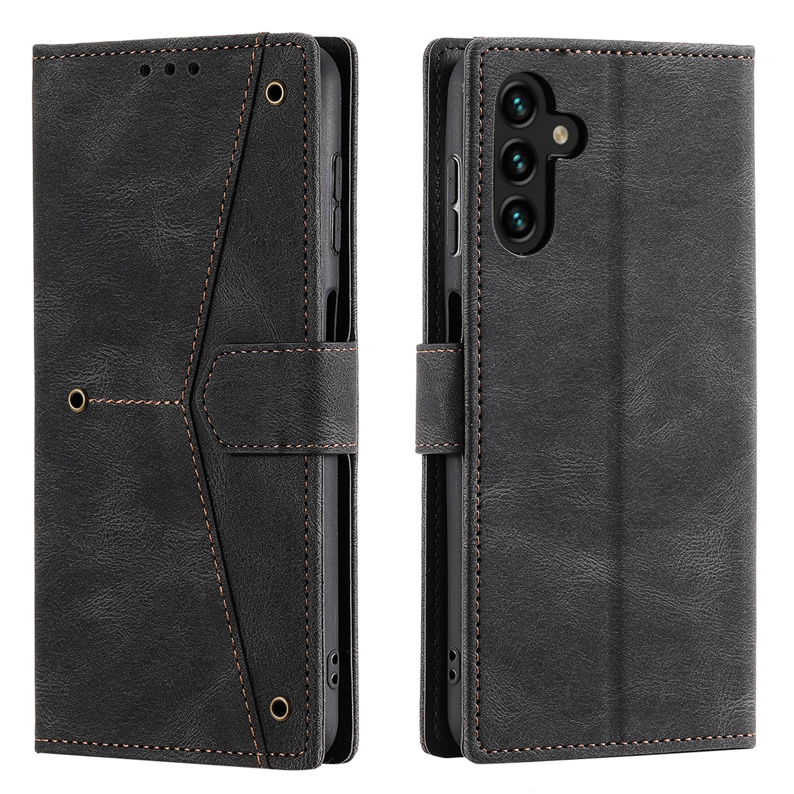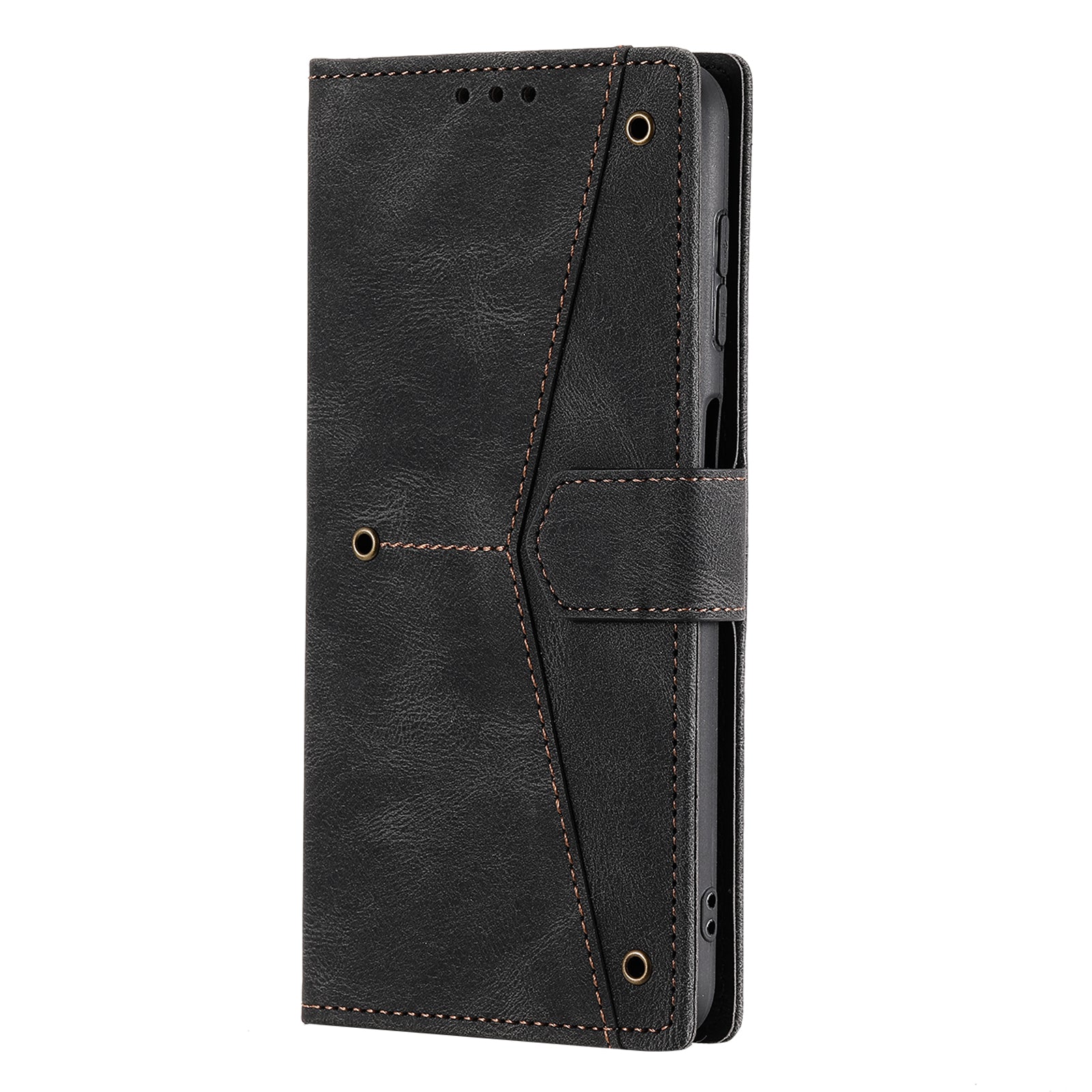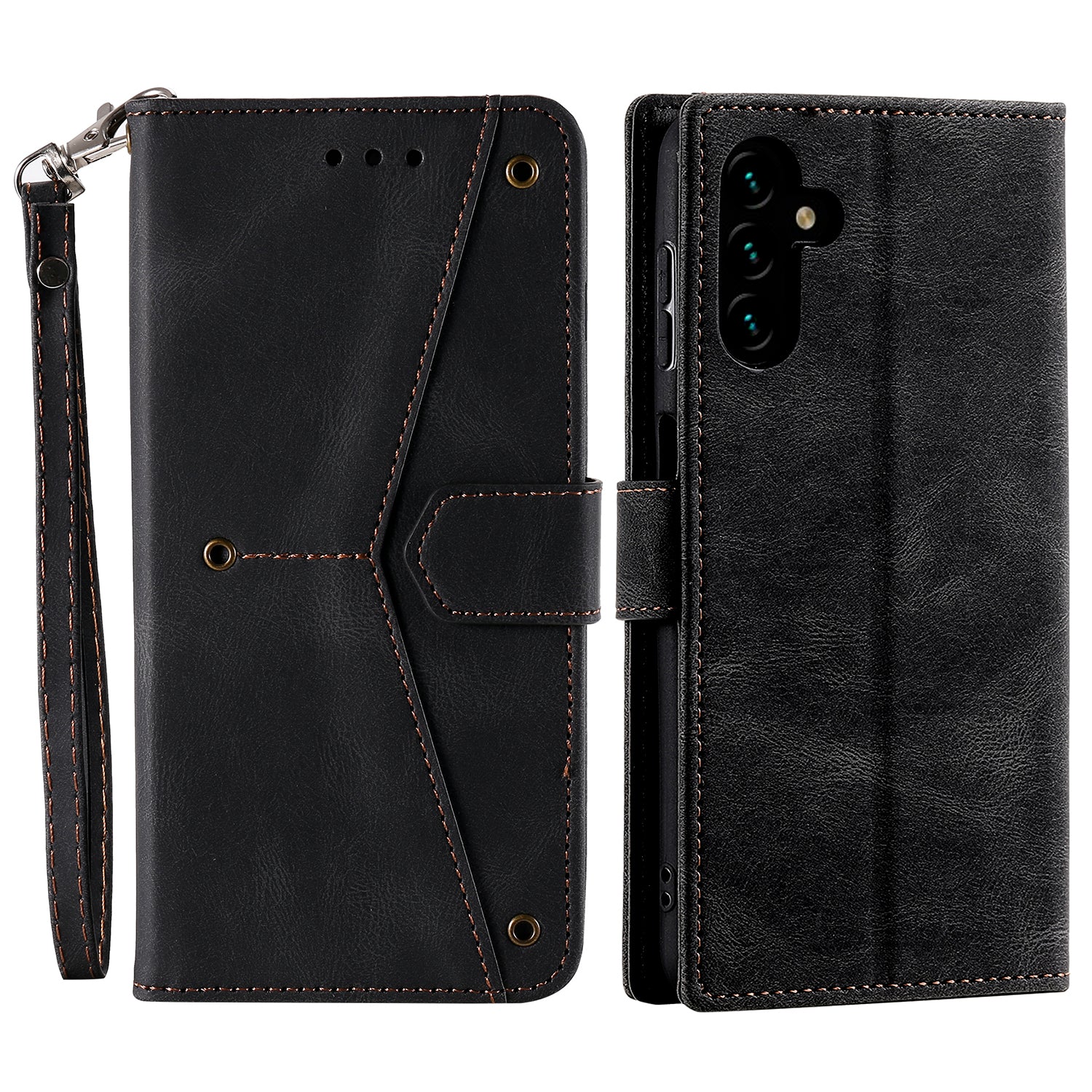 For Samsung Galaxy A16 5G / A16 4G Leather Case Splicing Stitching Wallet Stand Phone Cover with Strap - Black