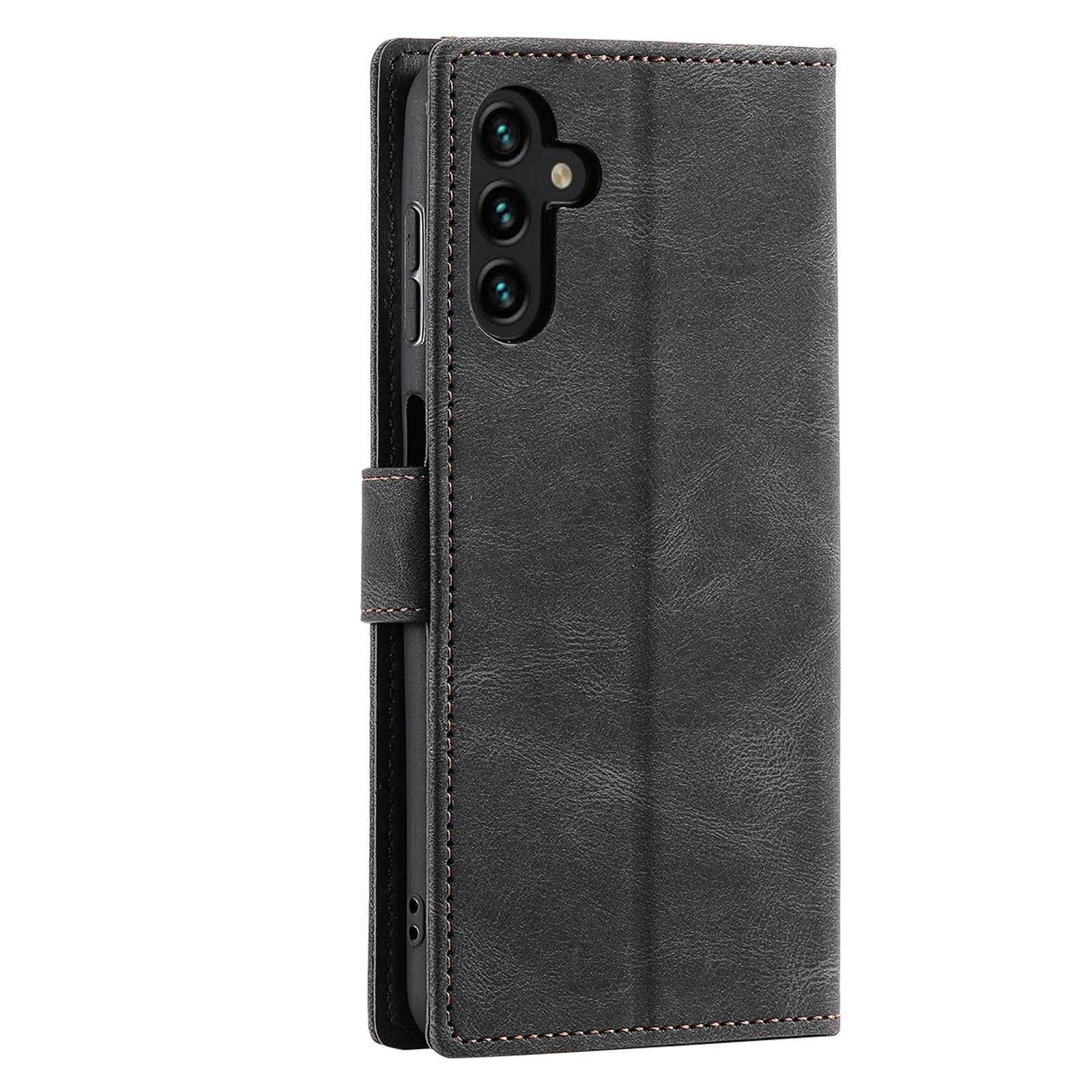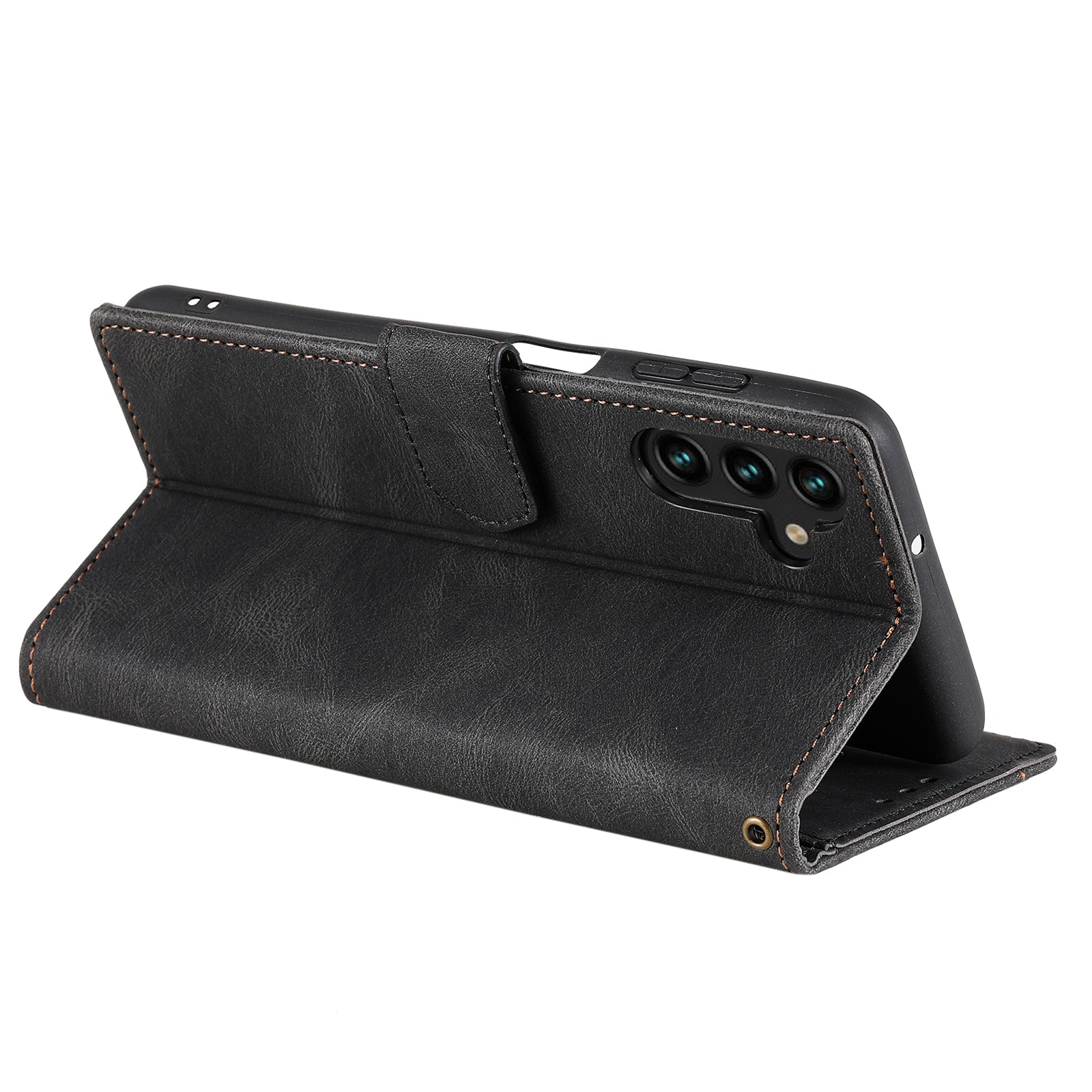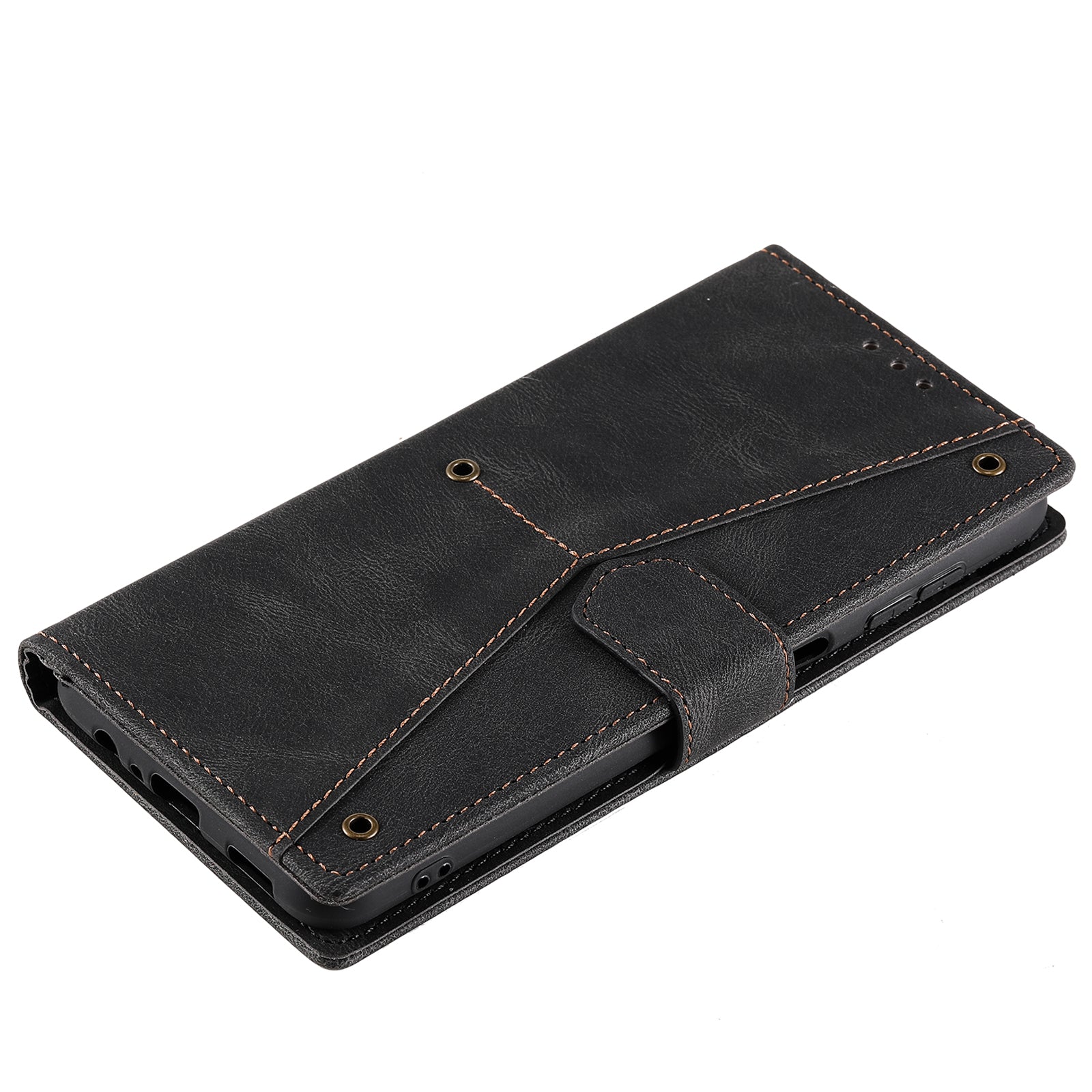 For Samsung Galaxy A16 5G / A16 4G Leather Case Splicing Stitching Wallet Stand Phone Cover with Strap - Black