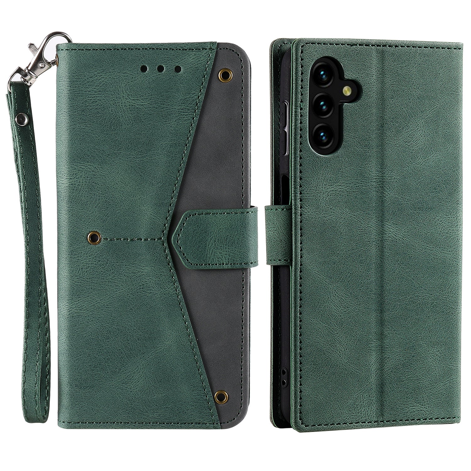For Samsung Galaxy A16 5G / A16 4G Leather Case Splicing Stitching Wallet Stand Phone Cover with Strap - Green