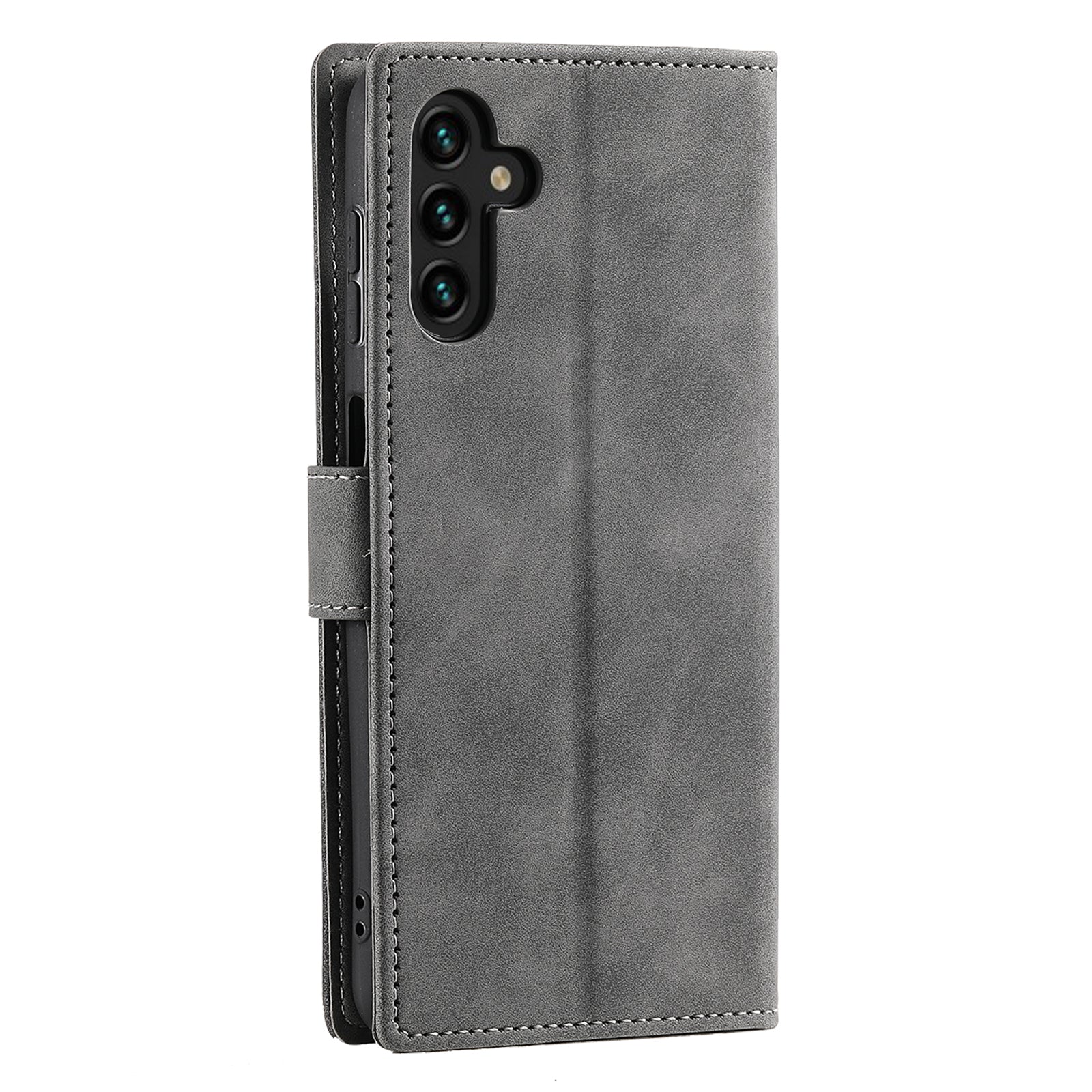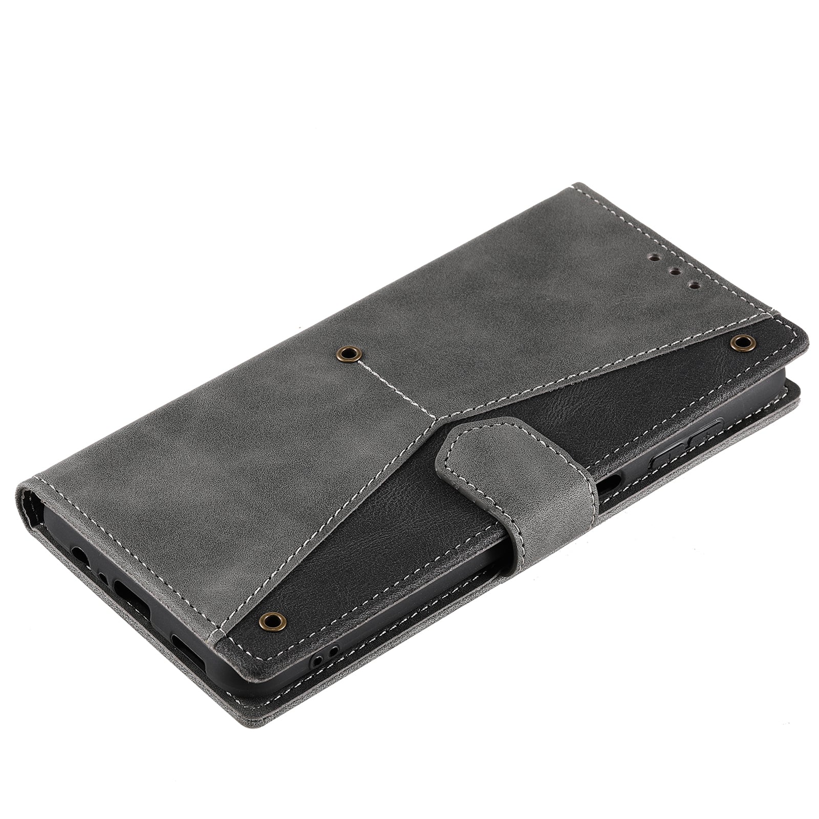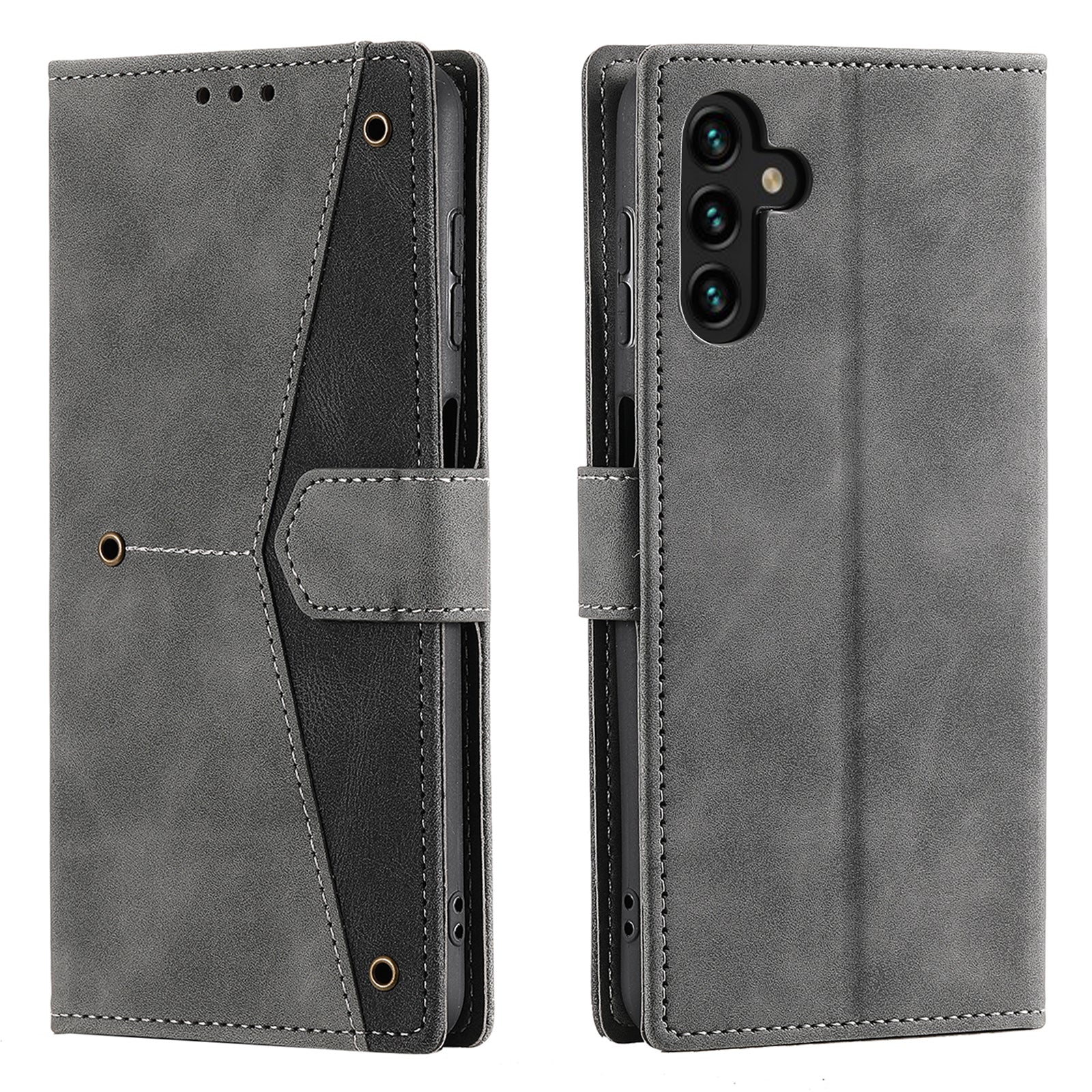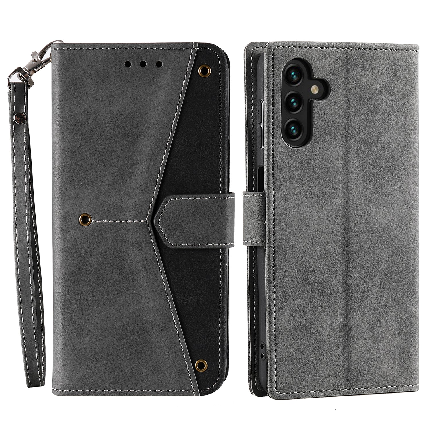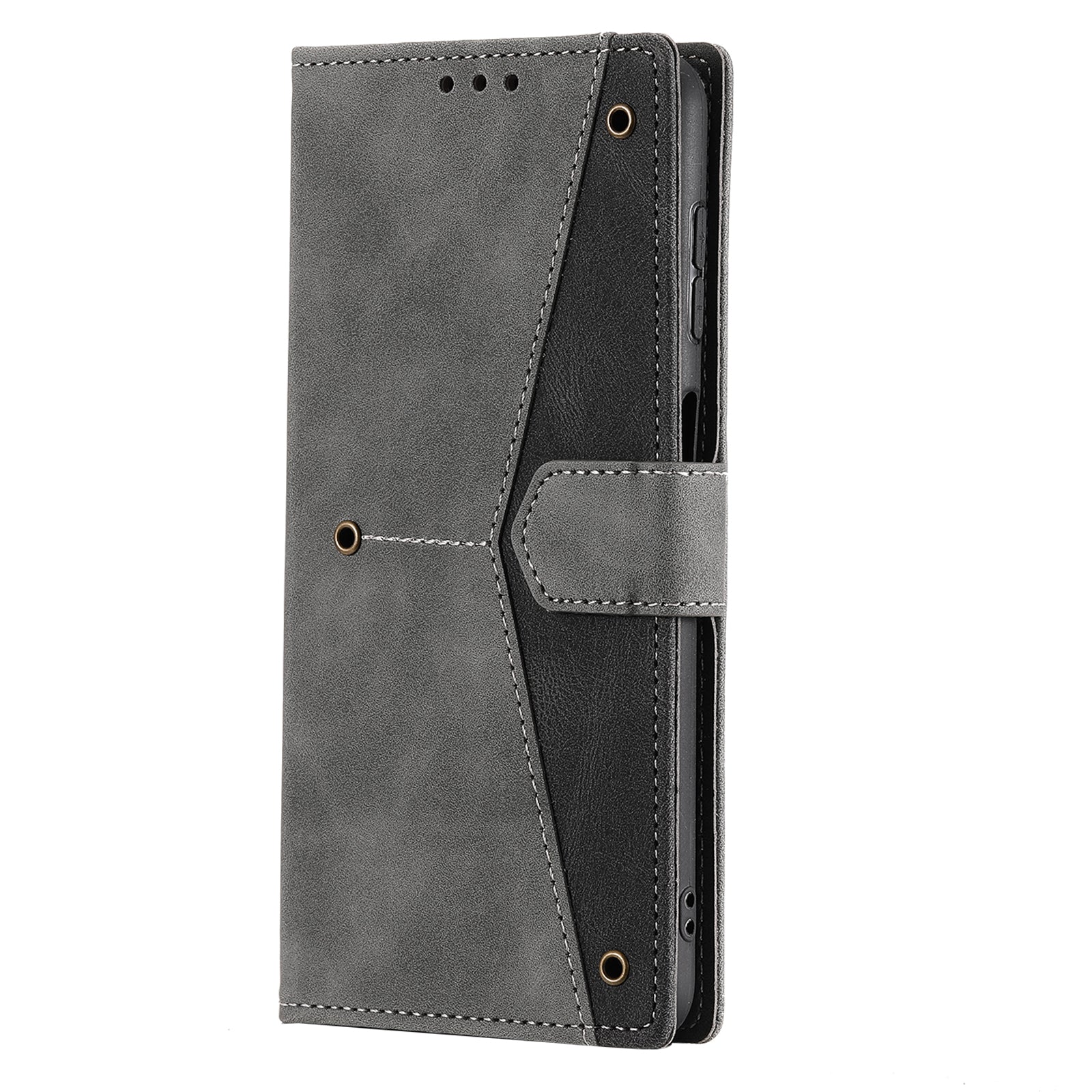 For Samsung Galaxy A16 5G / A16 4G Leather Case Splicing Stitching Wallet Stand Phone Cover with Strap - Grey