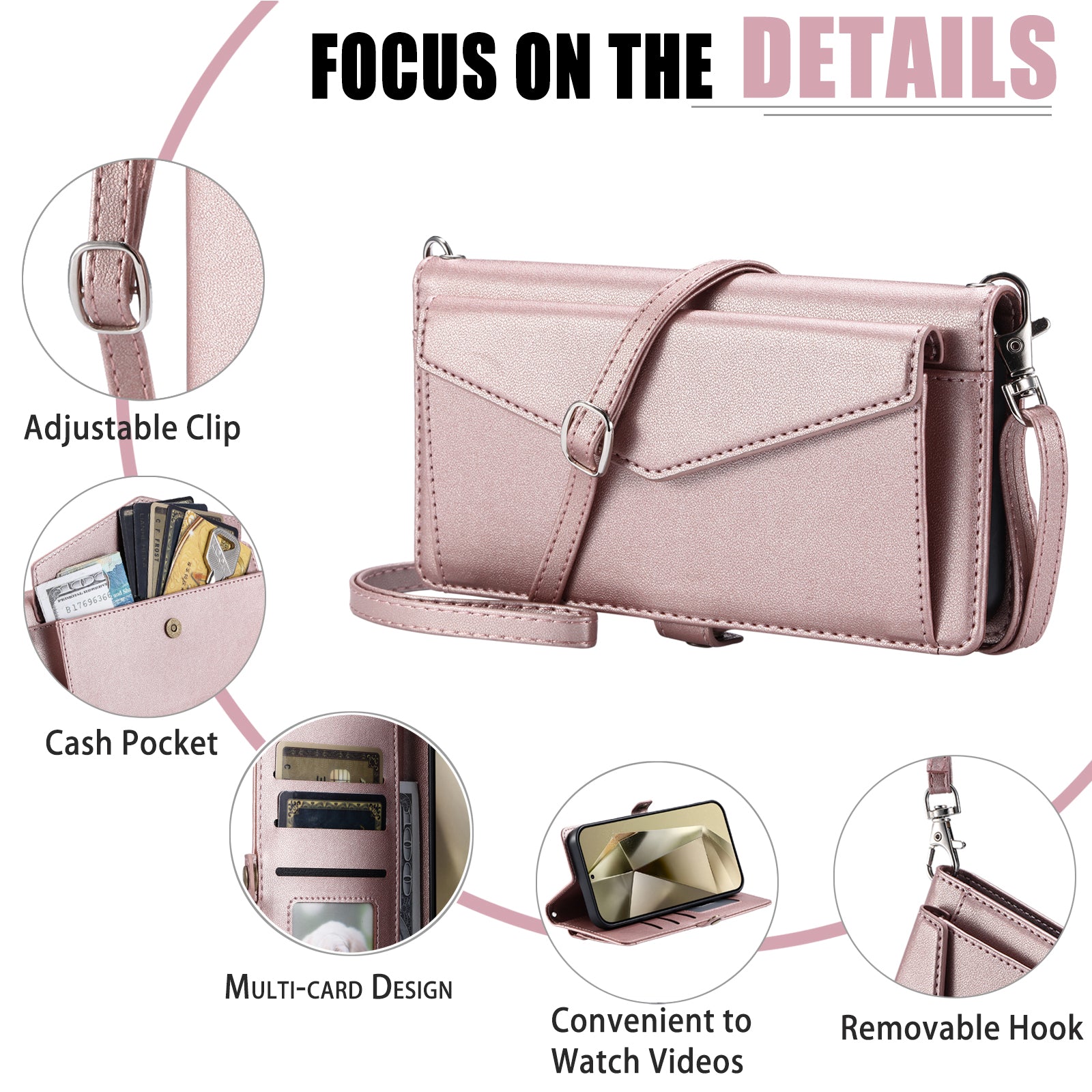 For Samsung Galaxy A16 5G / A16 4G Leather Case Wallet Stand Phone Cover with Straps - Rose Gold