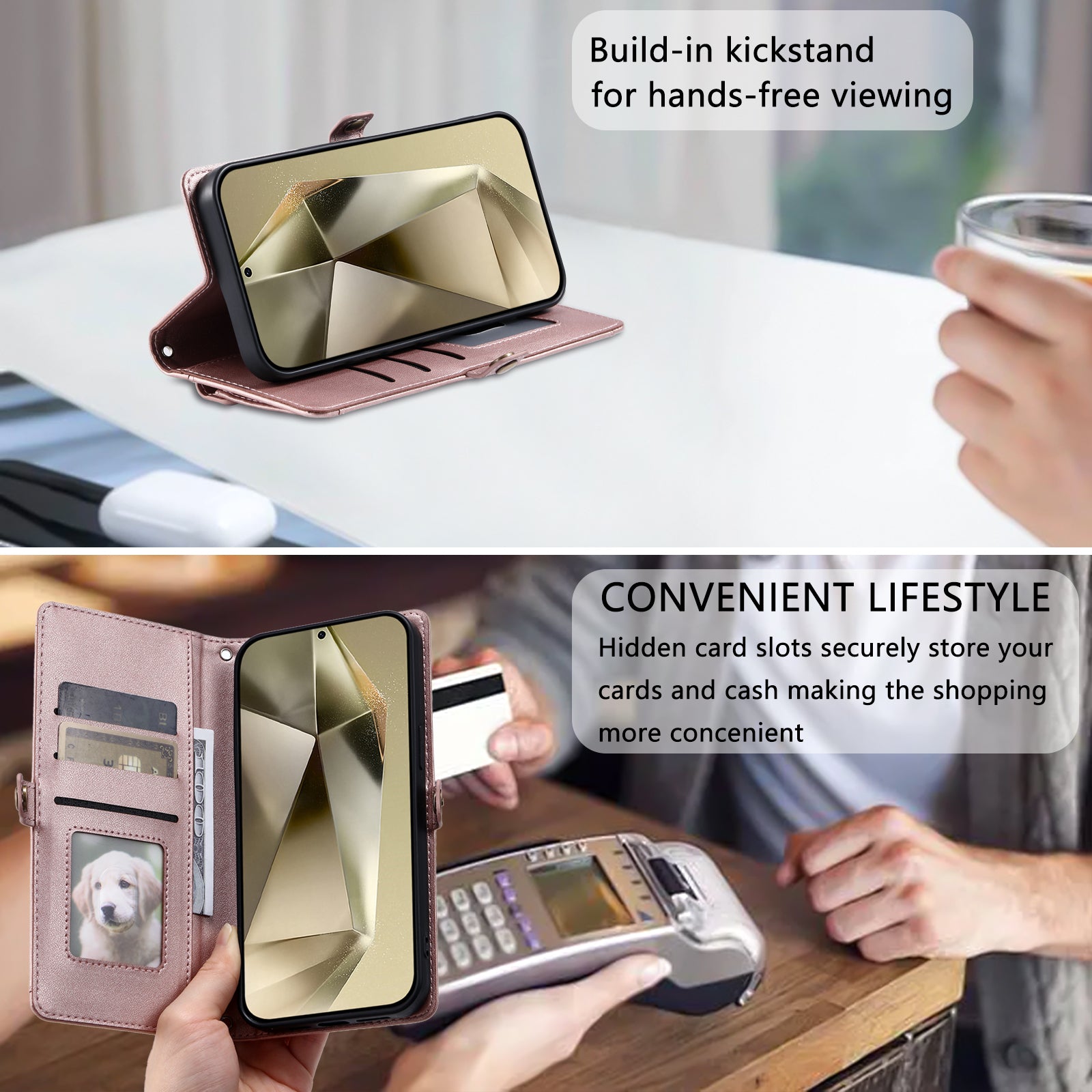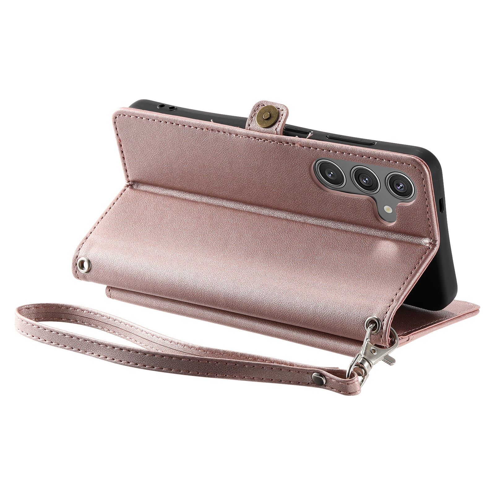 For Samsung Galaxy A16 5G / A16 4G Leather Case with Wrist Strap Wallet Stand Phone Cover - Rose Gold