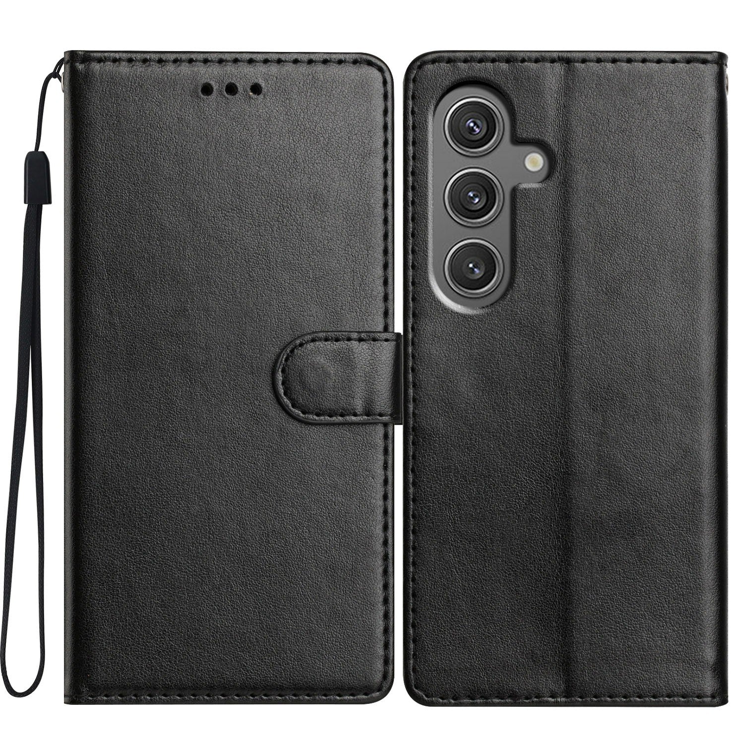 For Samsung Galaxy A16 5G / A16 4G Leather Phone Case Wallet Stand Cover with Handy Strap - Black