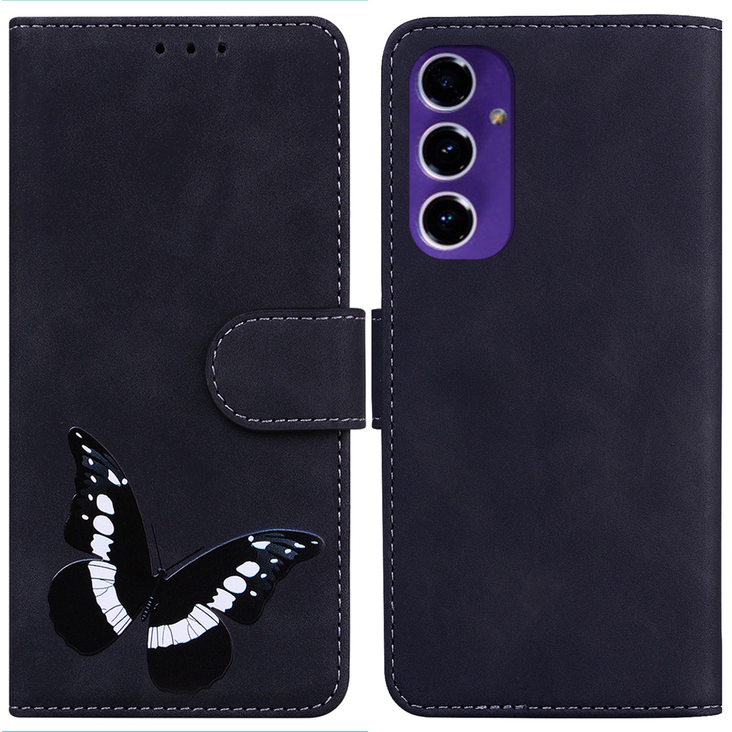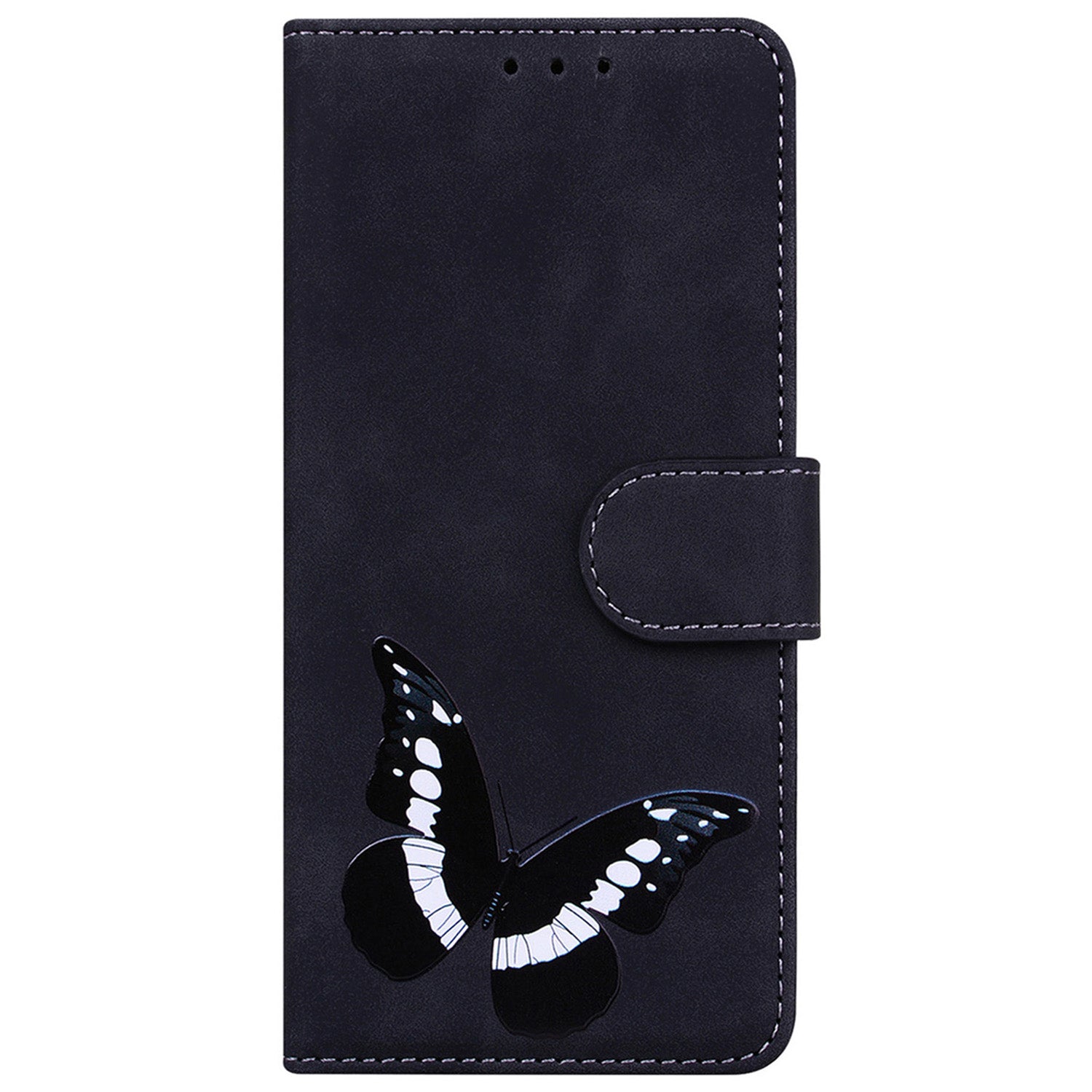 For Samsung Galaxy A16 5G / A16 4G Stand Case PU Leather Phone Cover Butterfly Printed - Black