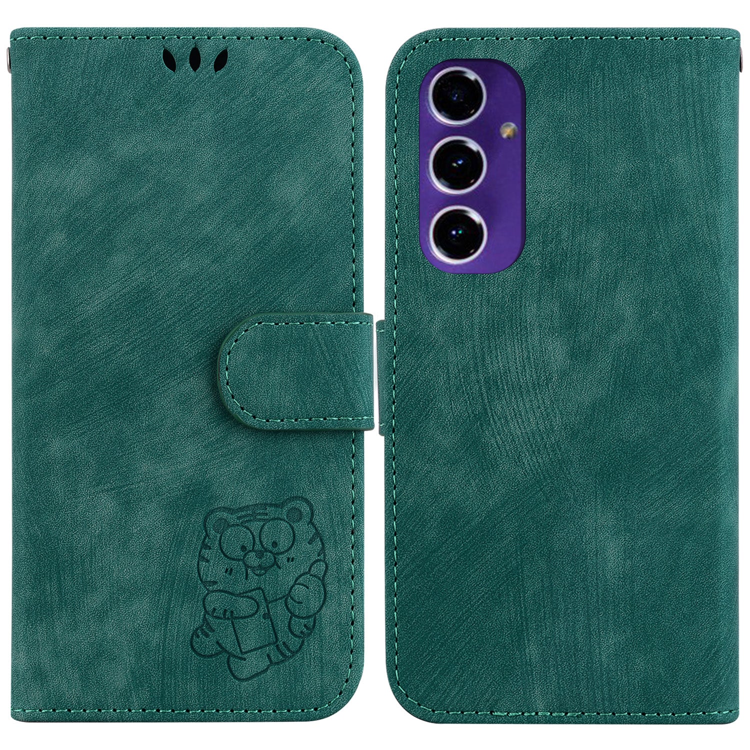 For Samsung Galaxy A16 5G / A16 4G Wallet Case Tiger Imprint Leather Shockproof Phone Cover - Green