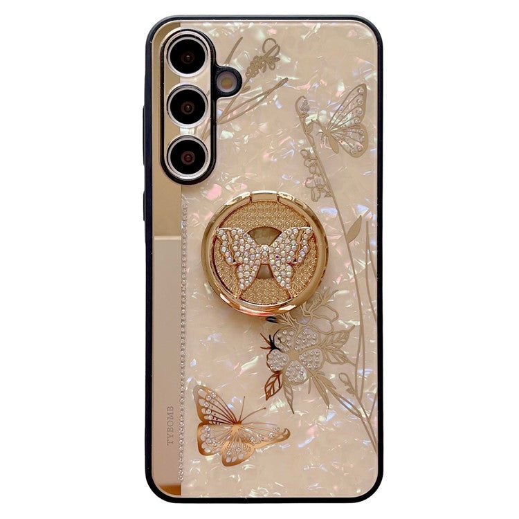 For Samsung Galaxy A55 5G Case Rhinestones Decor Kickstand TPU+PC Butterfly Floral Phone Cover - Gold
