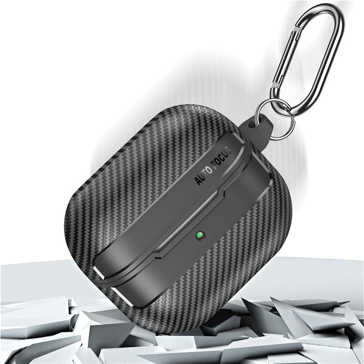 For Samsung Galaxy Buds3 / Buds3 Pro Case Carbon Fiber Texture TPU Earbuds Protective Cover with Hook - Transparent