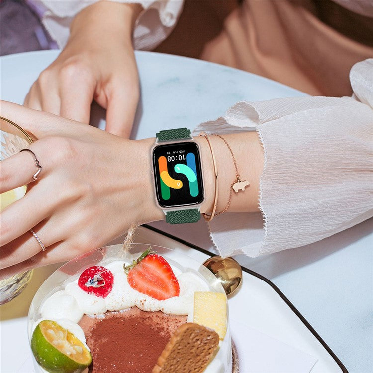For Samsung Galaxy Fit3 SM-R390 Woven Watch Strap Adjustable Wrist Band with Silver Connector - Army Green