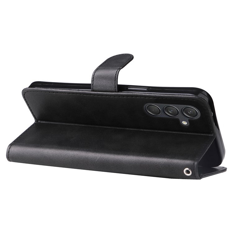 For Samsung Galaxy M55 5G / C55 5G / F55 5G Case Calf Texture Zipper Pocket Wallet Mobile Phone Cover - Black