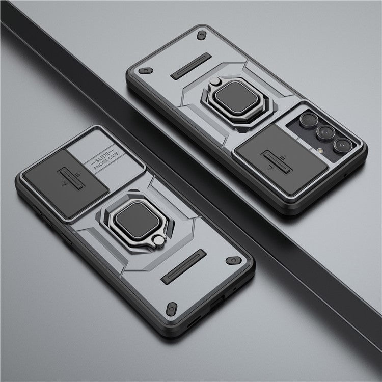 For Samsung Galaxy M55 5G / C55 5G / F55 5G Case PC+TPU Phone Protector with Slide Camera Cover - Grey