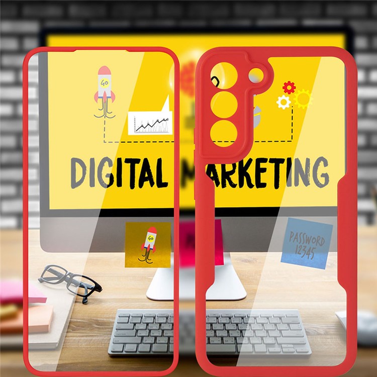 For Samsung Galaxy S23 Acrylic+TPU Clear Phone Case Camera Lens Protection Phone Cover with PET Screen Film - Purple