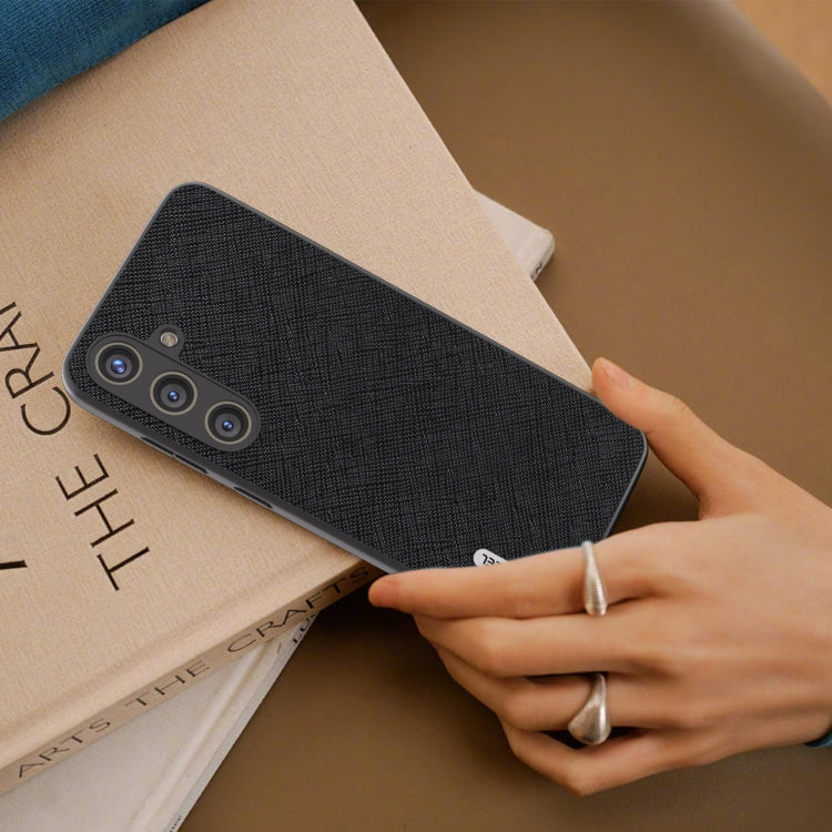 For Samsung Galaxy S24 5G ABEEL Cross Texture Genuine Leather Phone Case(Black)