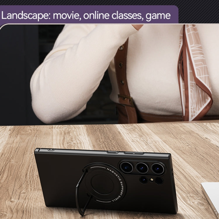 For Samsung Galaxy S24 5G Matte Magsafe Magnetic Phone Case with Trolley Holder(White)