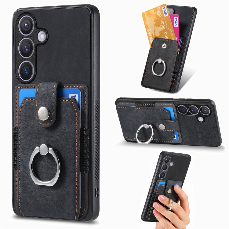 For Samsung Galaxy S24 5G Retro Skin-feel Ring Card Wallet Phone Case(Black)