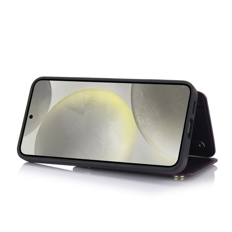 For Samsung Galaxy S24 5G YM006 Skin Feel Zipper Card Bag Phone Case with Dual Lanyard(Dark Purple)