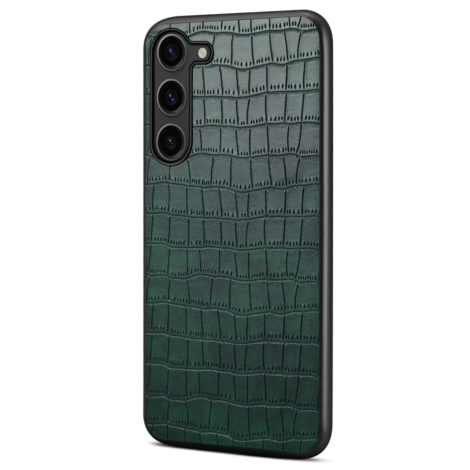For Samsung Galaxy S24 Back Case PU Leather Coated PC+TPU Crocodile Texture Phone Cover - Green
