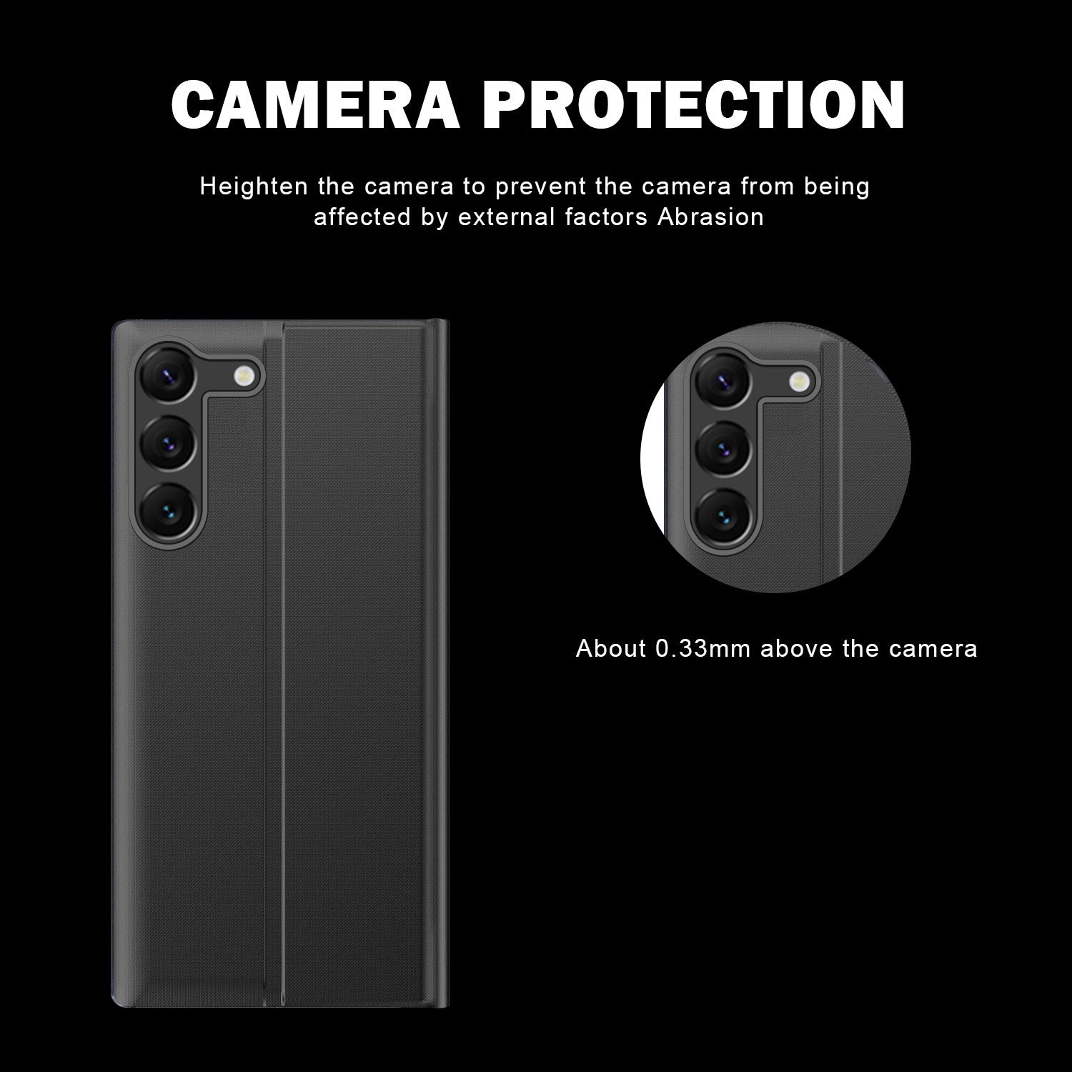 - Raised lip protection keeps the camera lens protected on a flat surface