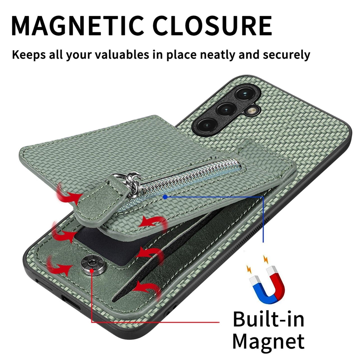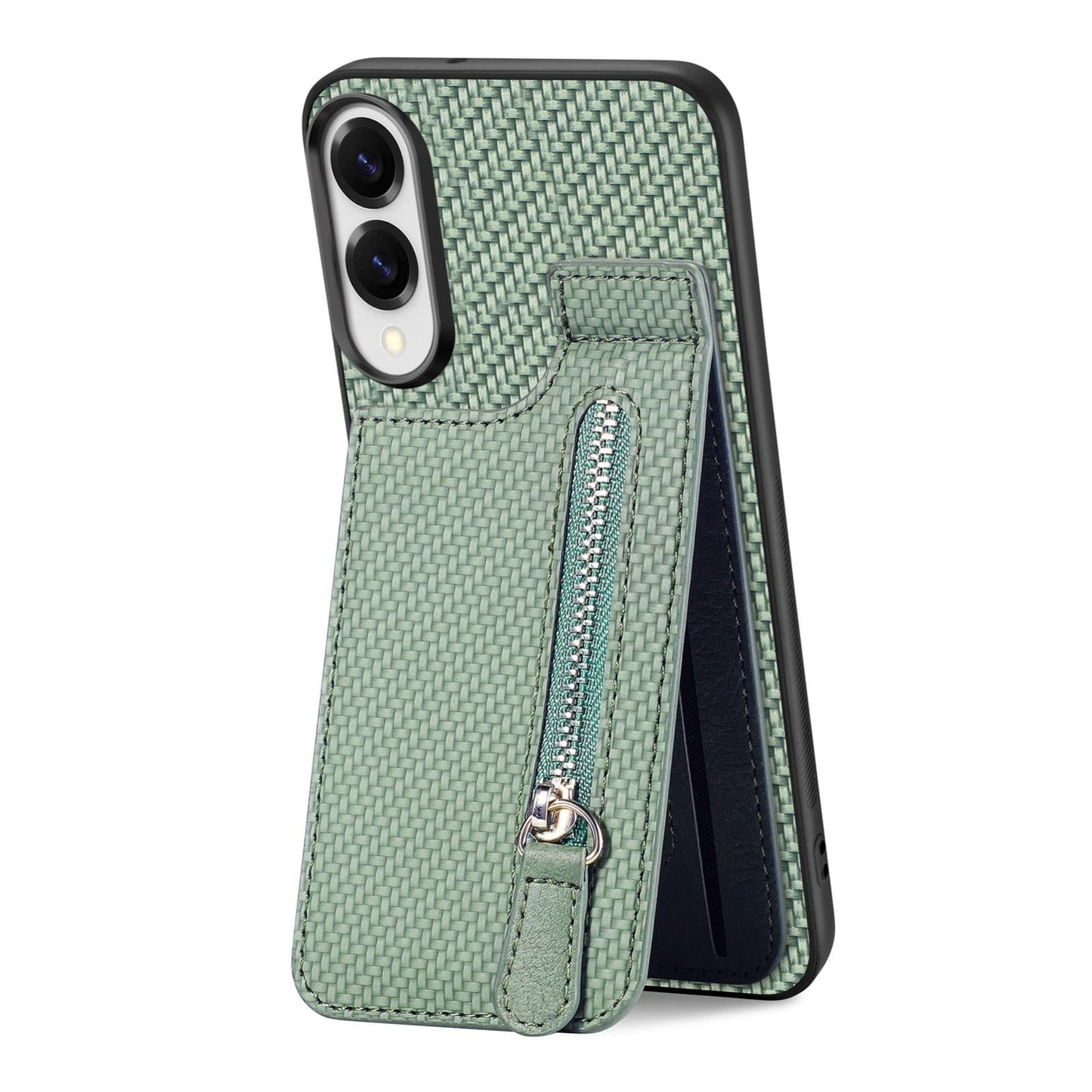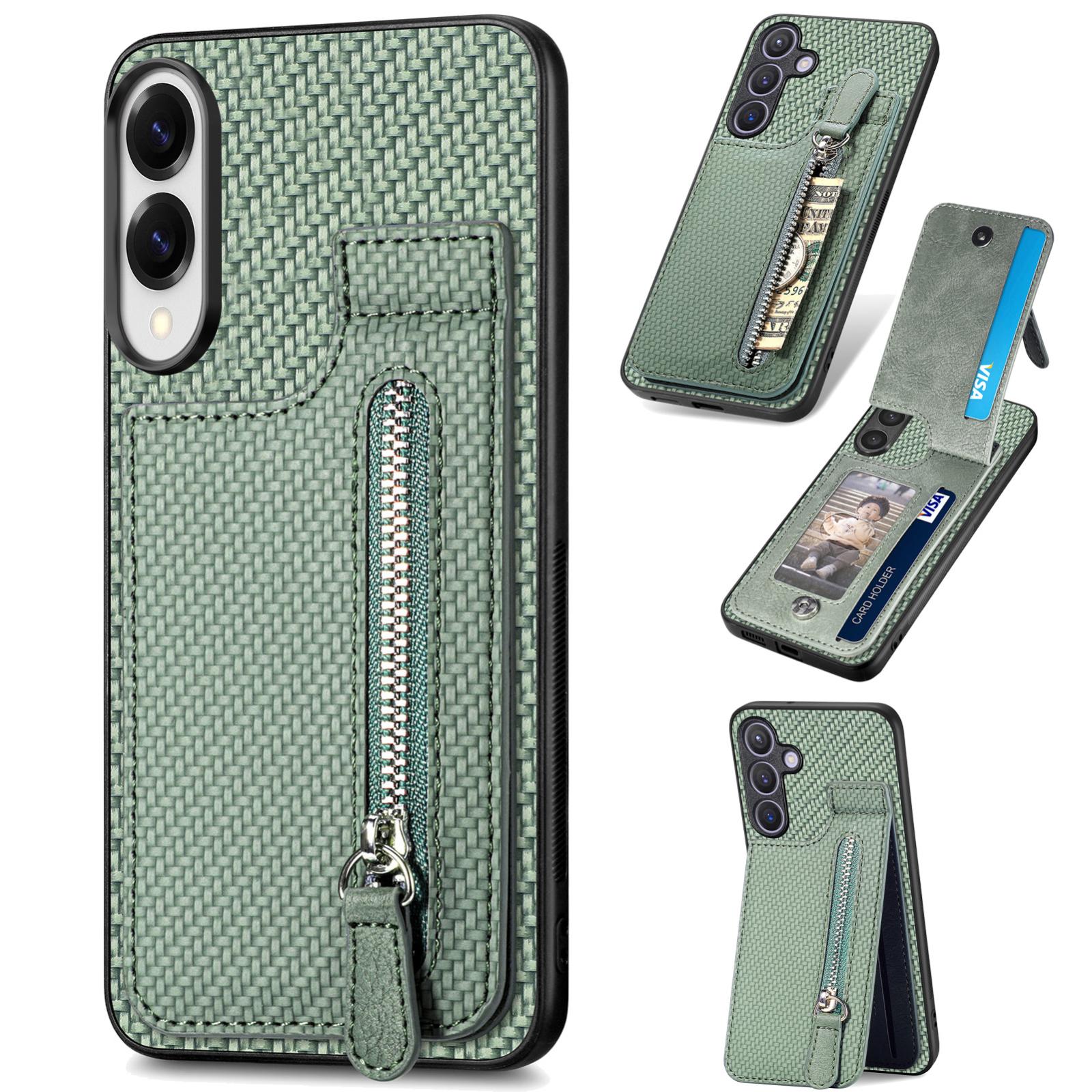 For Samsung Galaxy S25 Edge 5G Carbon Fiber Vertical Flip Zipper Phone Case(Green)