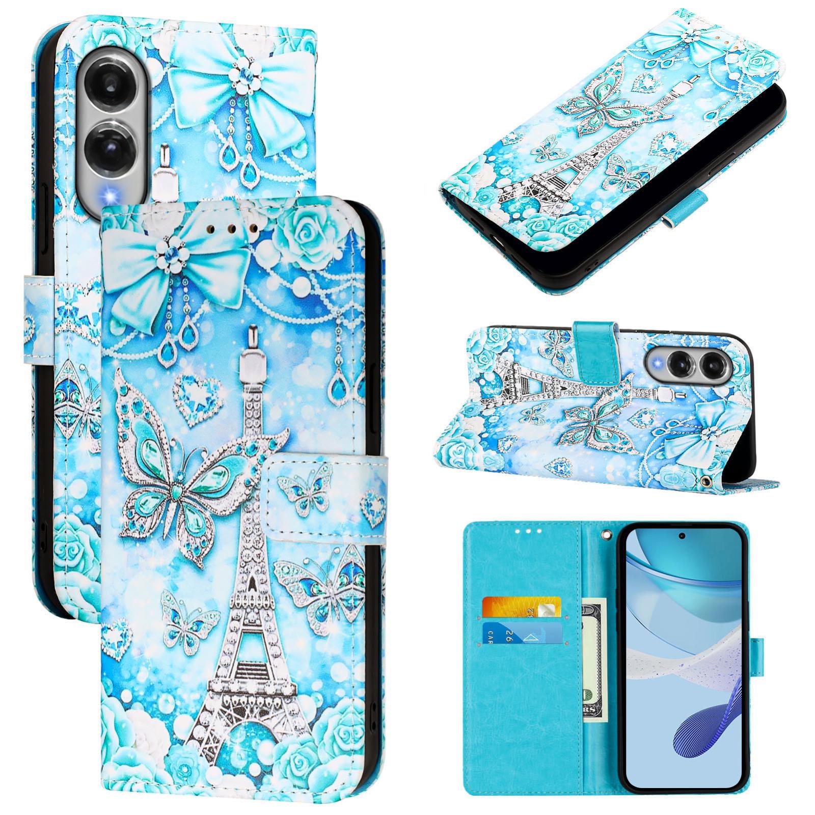 For Samsung Galaxy S25 Edge 5G Colored Drawing Pattern Plain Weave Leather Phone Case(Tower Butterfly)