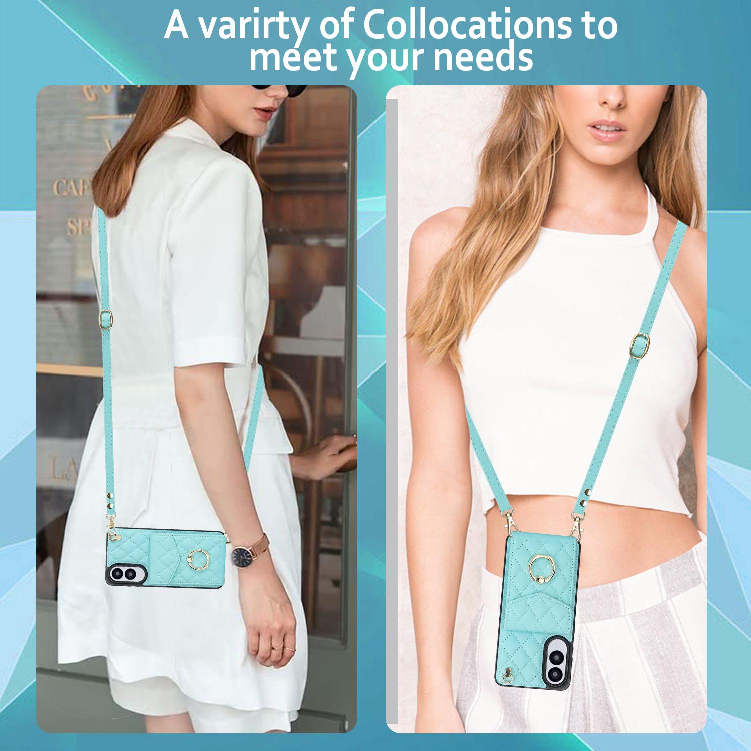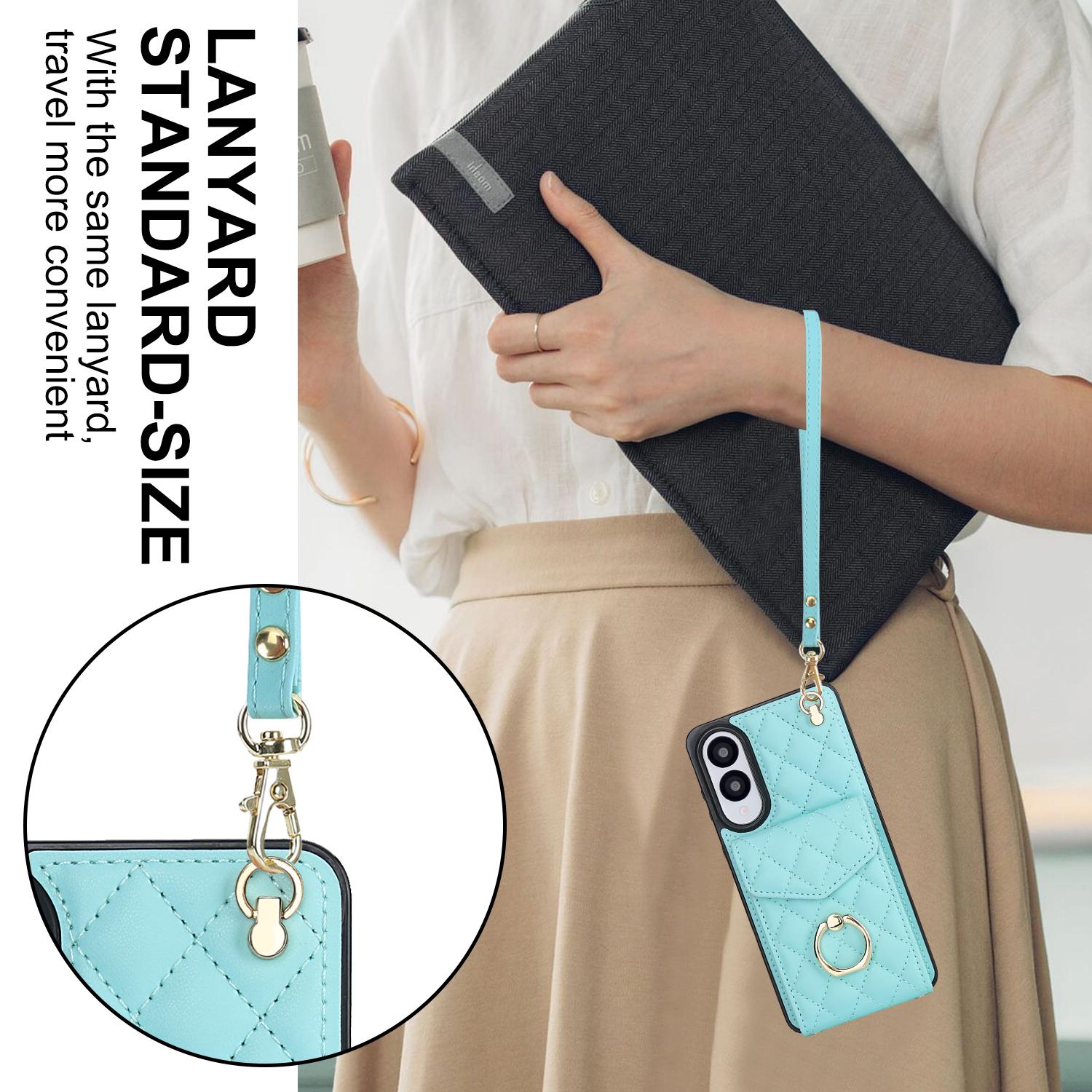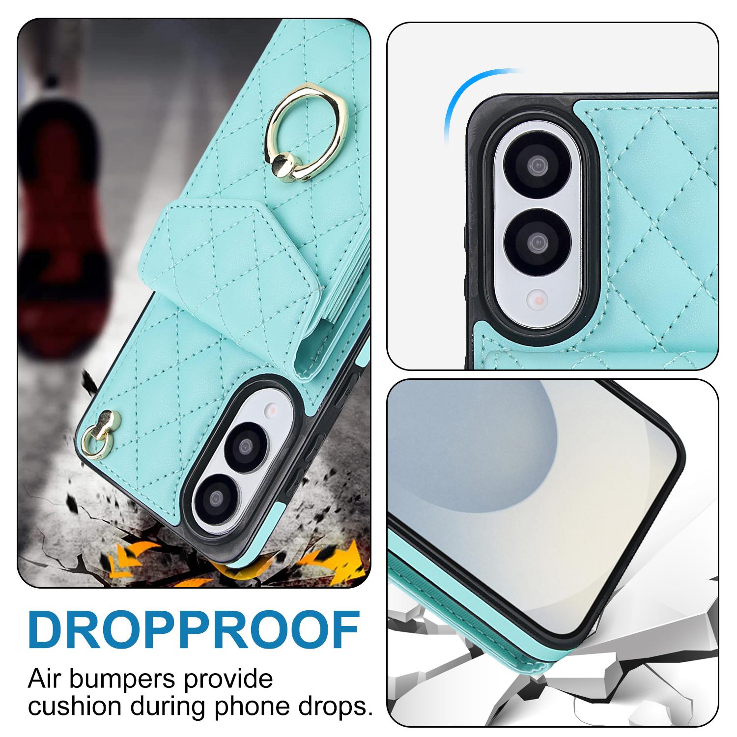 For Samsung Galaxy S25 Edge 5G Rhombic Texture Card Bag Phone Case with Long Lanyard(Mint Green)