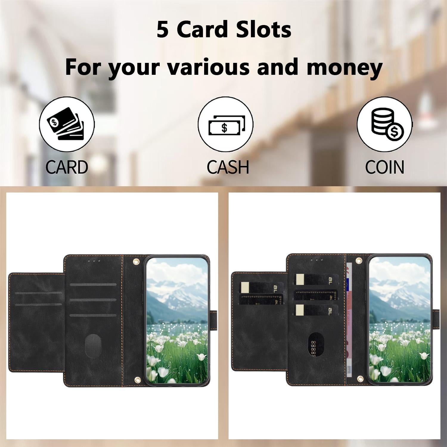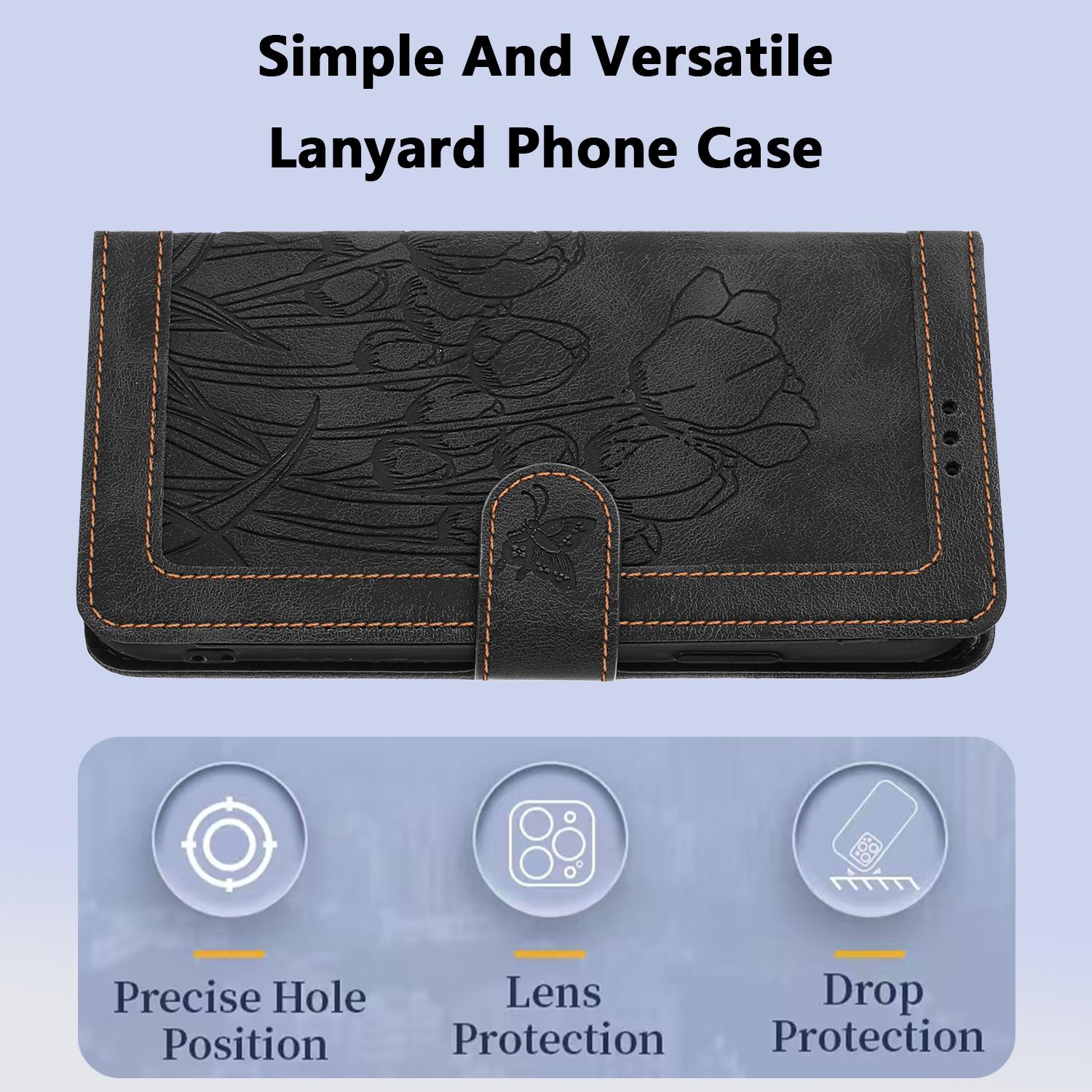 For Samsung Galaxy S25 Edge 5G Tulips Embossed Leather Phone Case with Lanyard(Black)
