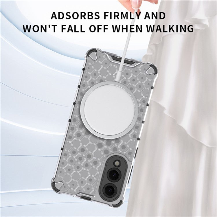 For Samsung Galaxy S25 Edge Case Compatible with MagSafe Honeycomb Design TPU + PC Phone Cover - Transparent