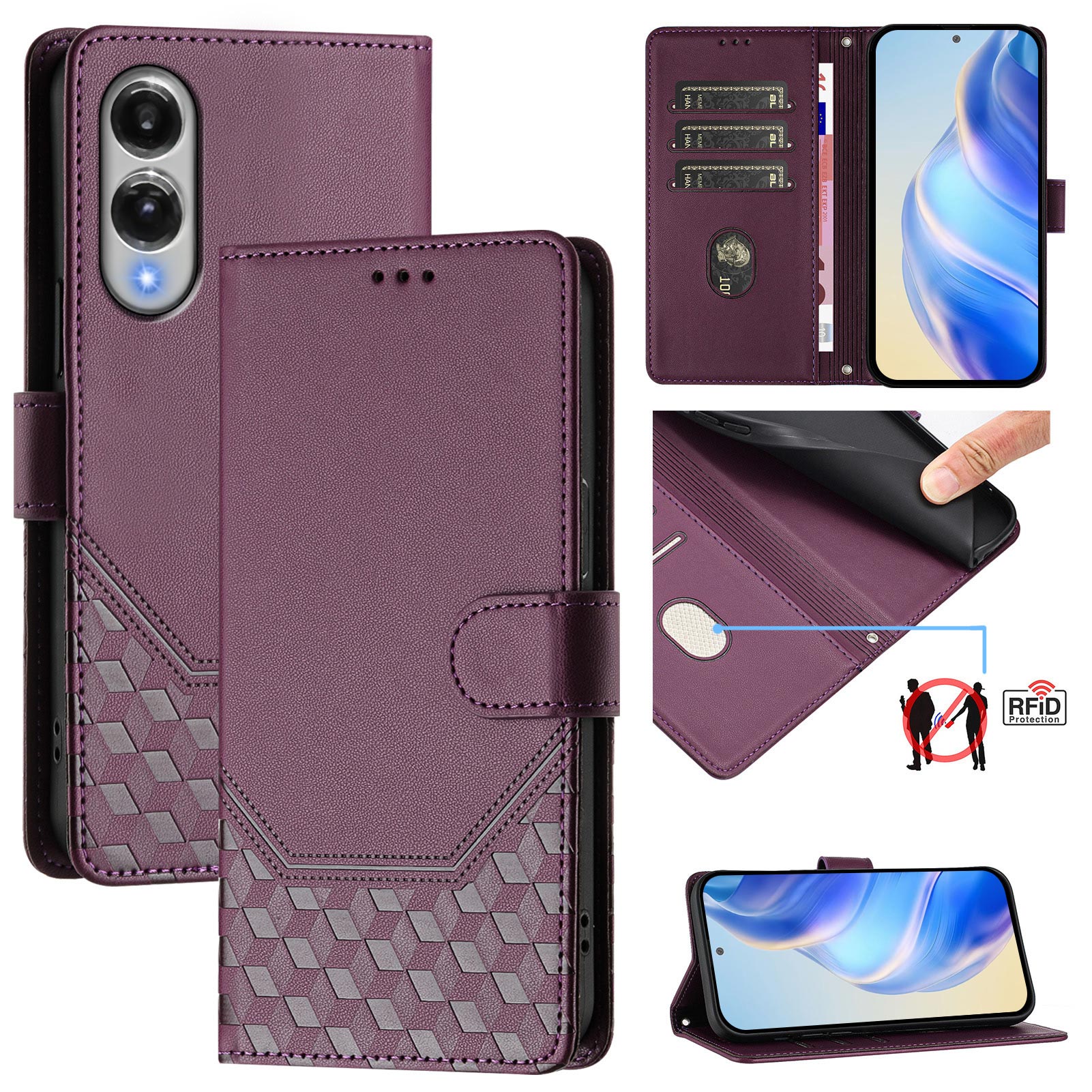 For Samsung Galaxy S25 Edge Case Imprinted Honeycomb RFID Blocking Leather Phone Cover with Strap - Dark Purple